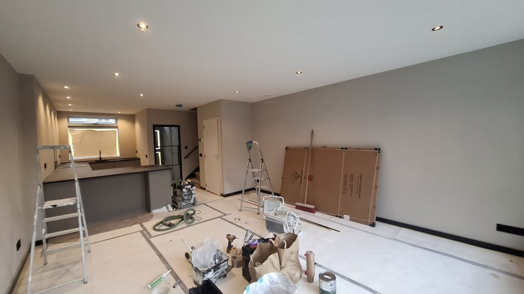 Zowel de keuken als de woonkamer zijn voorzien van inbouwspots.