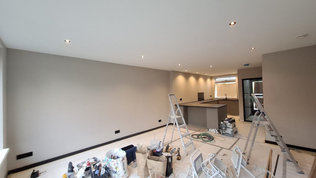 Alle muren zijn strak getrokken en in moderne tinten geverfd.