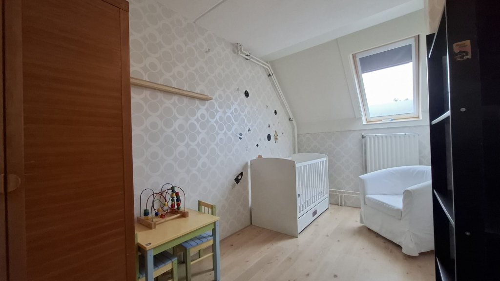 Via de vaste trap komt u op de overloop. Deze geeft toegang tot de 3 slaapkamers en de badkamer. De masterbedroom beschikt over een tweepersoonsbed en een grote kledingkast. De andere slaapkamers zijn nu ingericht als kinderkamers maar zijn ook prima in te delen als een hobbykamer of kantoor. In de badkamer bevindt zich een bad met douche, wastafel en het tweede toilet.