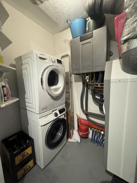 Inpandige berging met technische ruimte en aansluiting voor wasmachine.