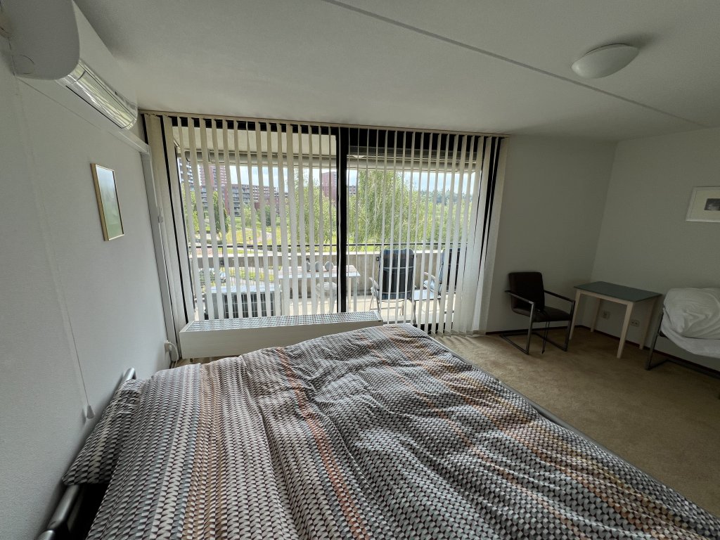 Ruime slaapkamer met directe toegang tot de loggia en een eigen airco-unit.