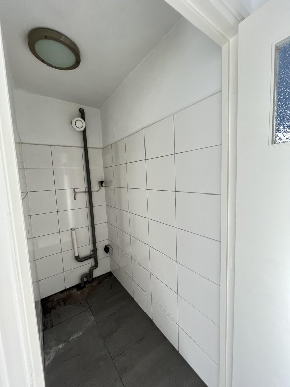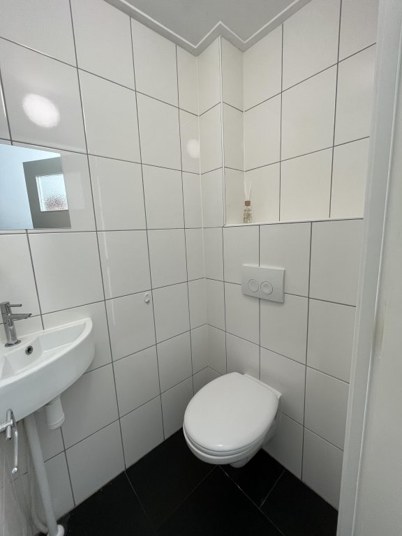Op de eerste verdieping de overloop met 3 slaapkamers van 13, 11 en 6 m2. Moderne badkamer met douchecabine, toilet en wastafel met meubel. Separate ruimte met aansluiting voor wasmachine en droger. De eerste verdieping is (muv de badkamer) voorzien van een laminaatvloer.
