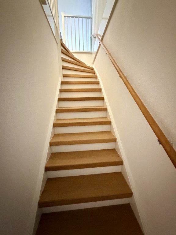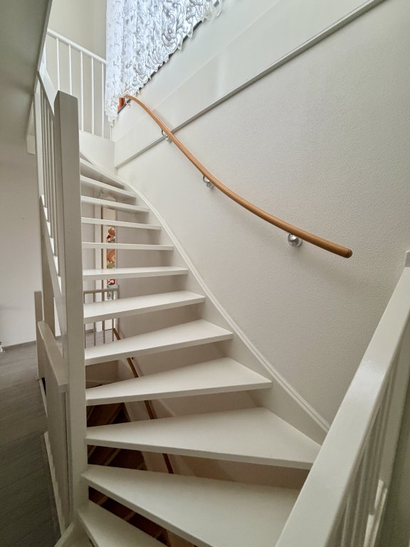 Inpandige berging onder de trap met elektra-aansluiting. Aan de andere zijde vind je de vernieuwde, ruime en niet te steile trap naar de 1e verdieping.