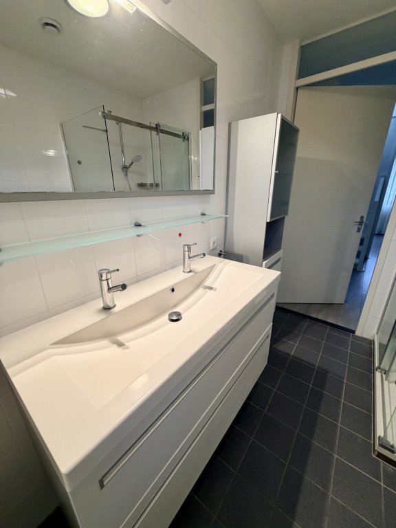 3 ruime slaapkamers en een badkamer met toilet, dubbele wasbak en douchecabine. Ook is er ruimte voor een droger- en wasmachine op de overloop tussne de hal en de badkamer.