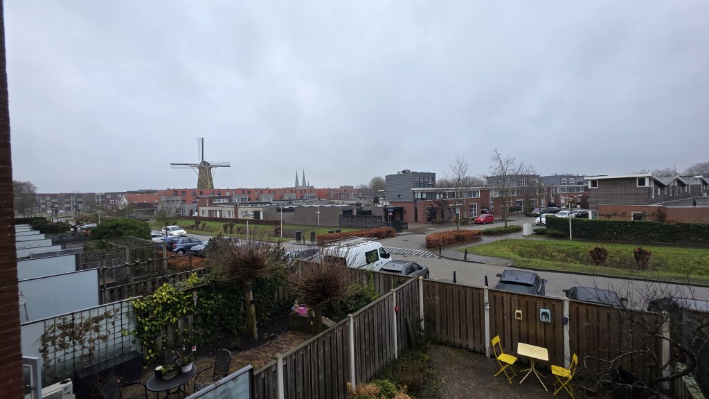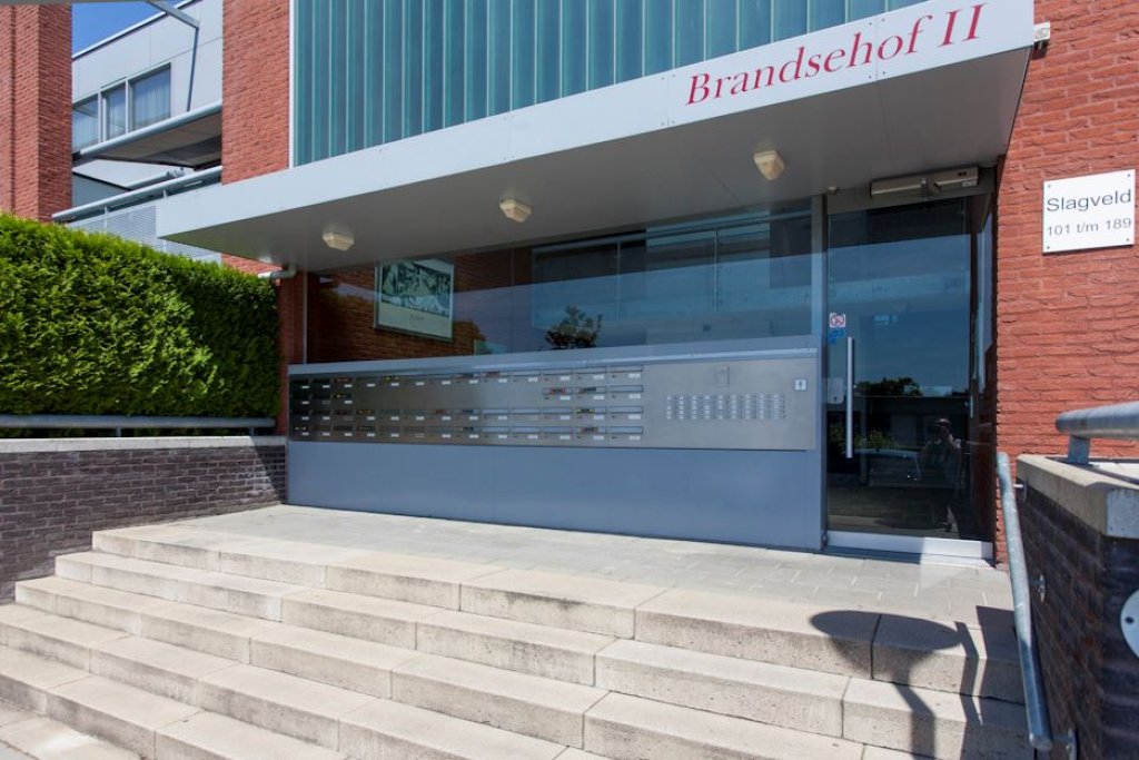 De entree van de woning ligt op de eerste etage van het wooncomplex, gesitueerd aan een sfeervol binnenpleintje, wat zorgt voor een rustige en aangename woonomgeving.