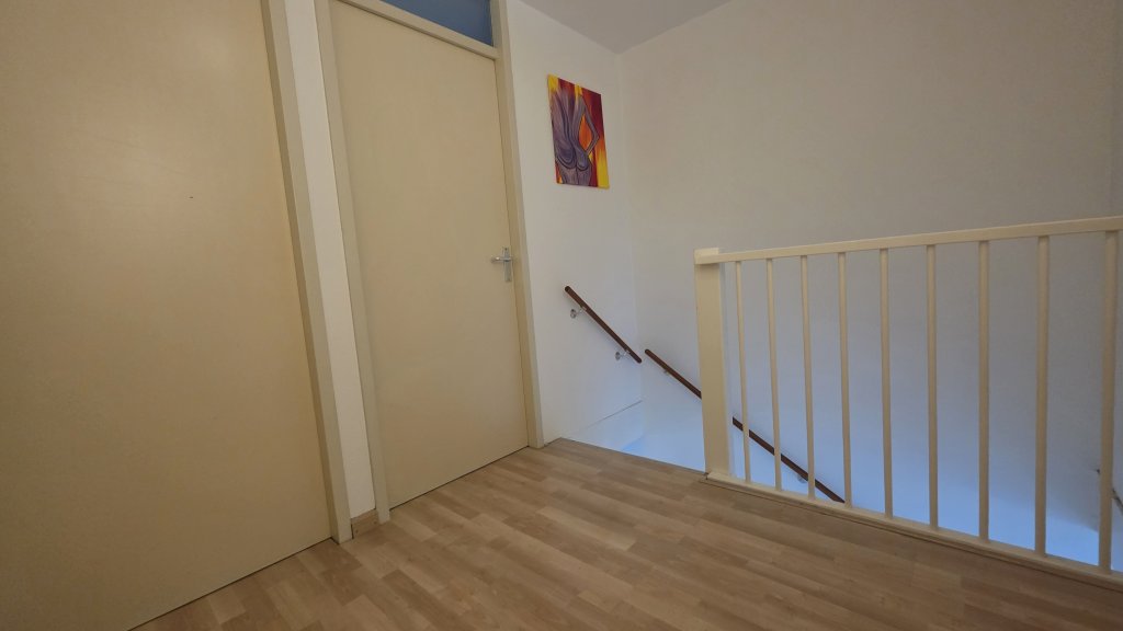 Vanuit de woonkamer bereikt u via de trap de bovenverdieping. Hier komt u uit op een centrale hal met toegang tot drie slaapkamers en een badkamer.