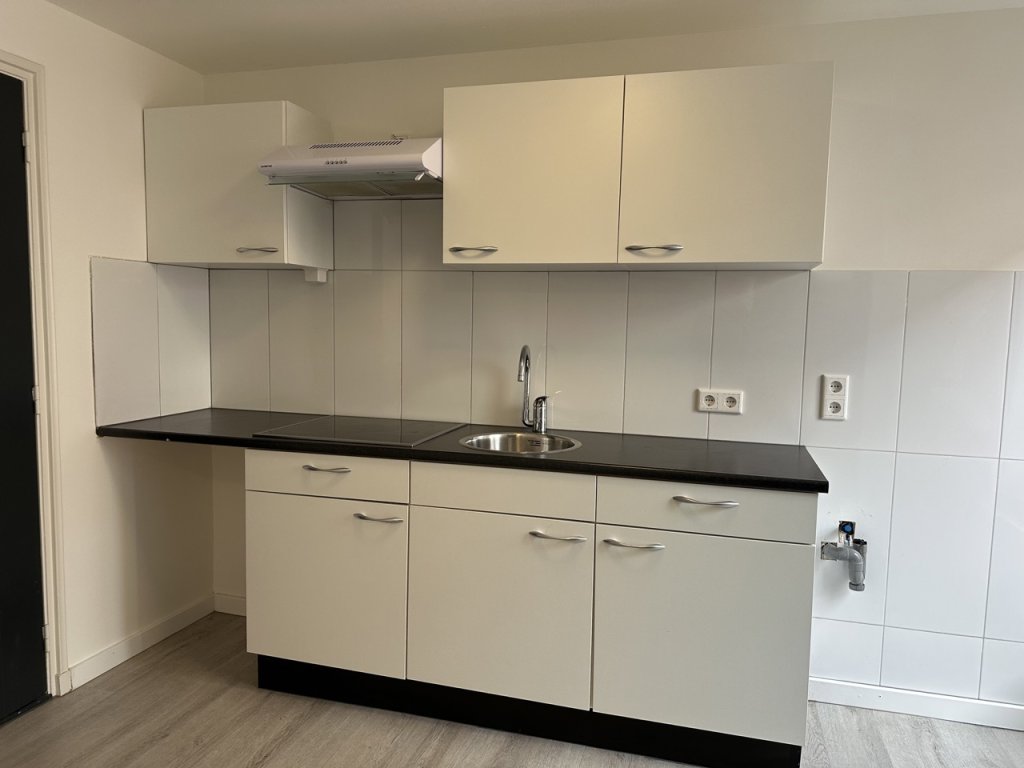 Bij binnenkomst in de woning op de 2e verdieping bevinden zich aan de rechterzijde een keuken (ca. 8 m2) voorzien van wit keukenblok met inductie kookplaat, afzuigkap en wasmachine aansluiting.