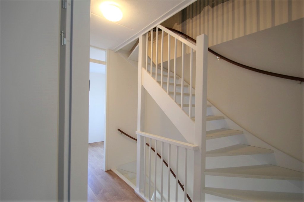 Begane grond: hal/entree met toilet en meterkast, ruime tuingerichte woonkamer met open keuken (totaal ca. 36 m2), openslaande deuren naar de tuin en een separate loopdeur. Open trap naar de verdieping. Nette keukeninrichting (wit, hoekopstelling, aan de voorzijde) v.v. koelvriescombi, vaatwasser, oven-magenetroncombi, gaskookplaat en afzuigkap.