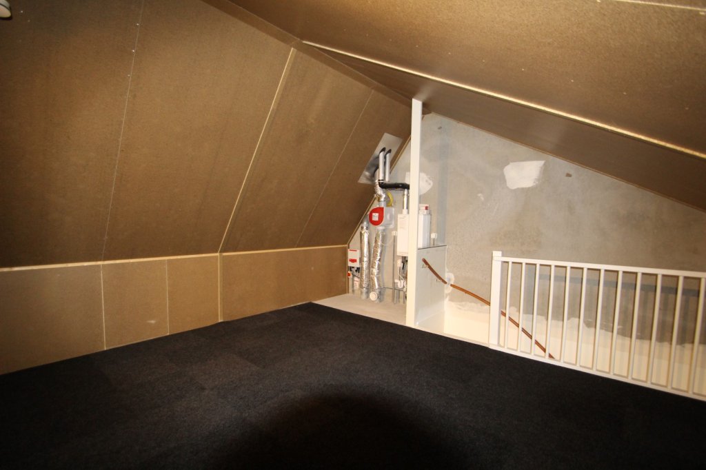 Tweede verdieping: middels vaste trap bereikbaar, zolderkamer (zonder raam en verwarming) met wasmachine aansluiting. CV ketel en Ventilatie-unit.