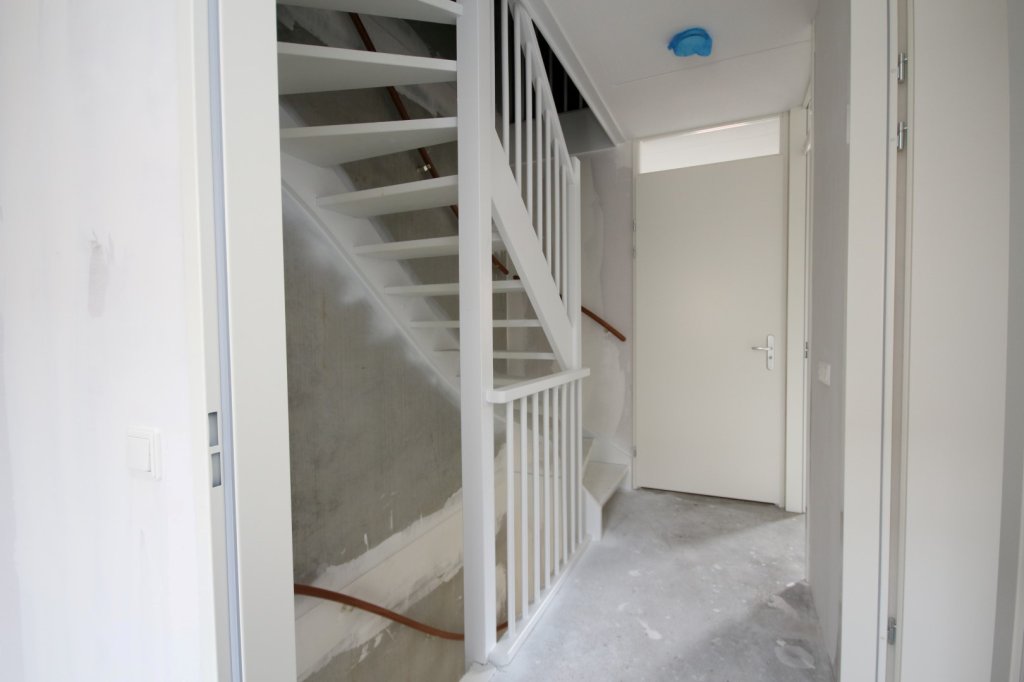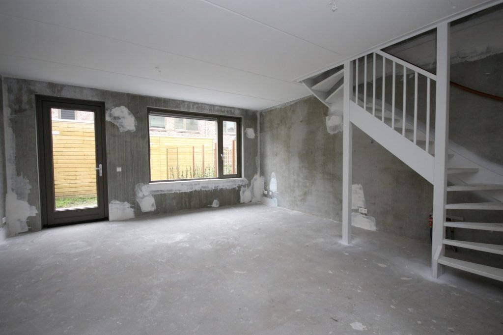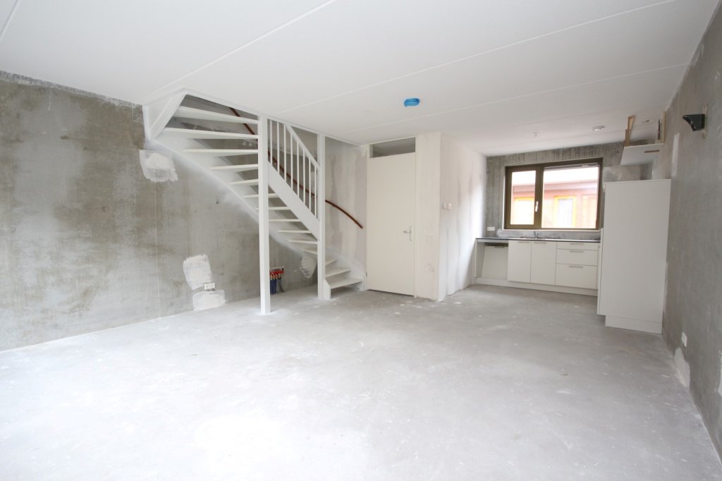 Begane grond: hal/entree met toilet en meterkast, ruime tuingerichte woonkamer met open keuken (totaal ca. 36 m2), openslaande deuren naar de tuin en een separate loopdeur. Open trap naar de verdieping. Nette keukeninrichting (wit, hoekopstelling, aan de voorzijde) v.v. koelvriescombi, vaatwasser, oven-magenetroncombi, gaskookplaat en afzuigkap.