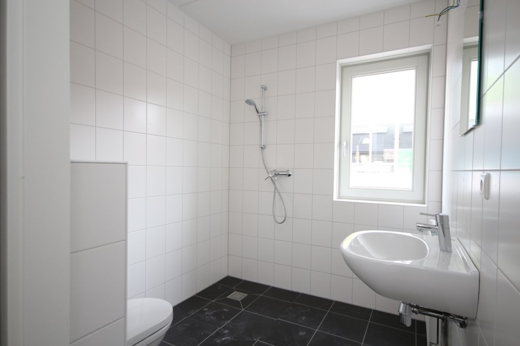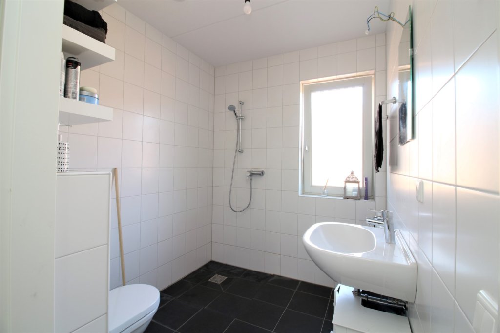 Eerste verdieping: overloop, drie slaapkamers van ca. 12, 10 en 6 m2, nette badkamer (ca. 4,5 m2) met douche, tweede toilet en vaste wastafel.