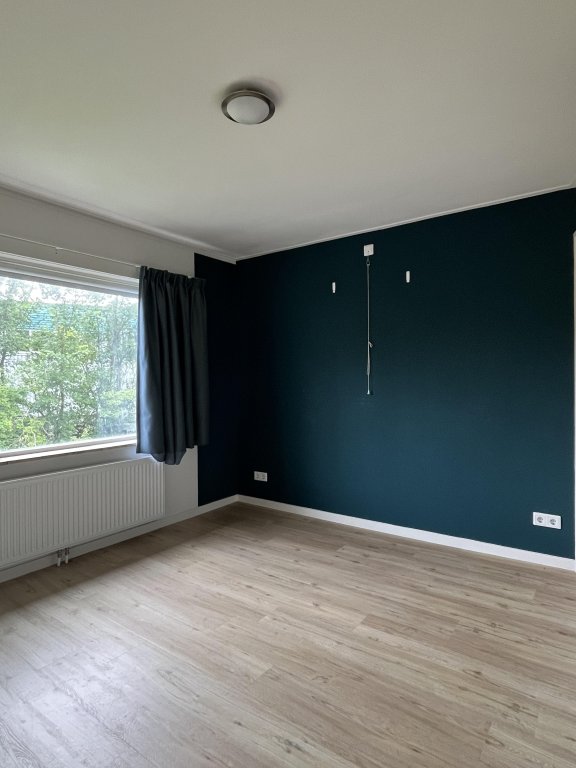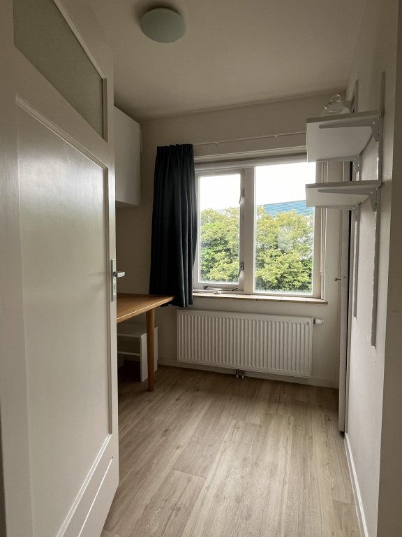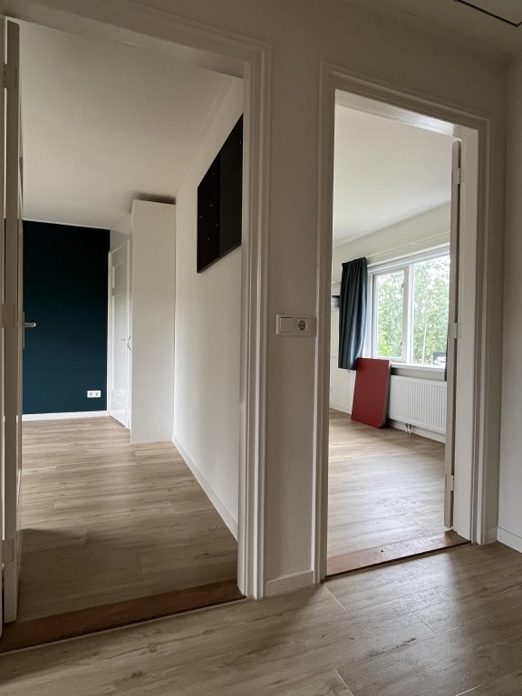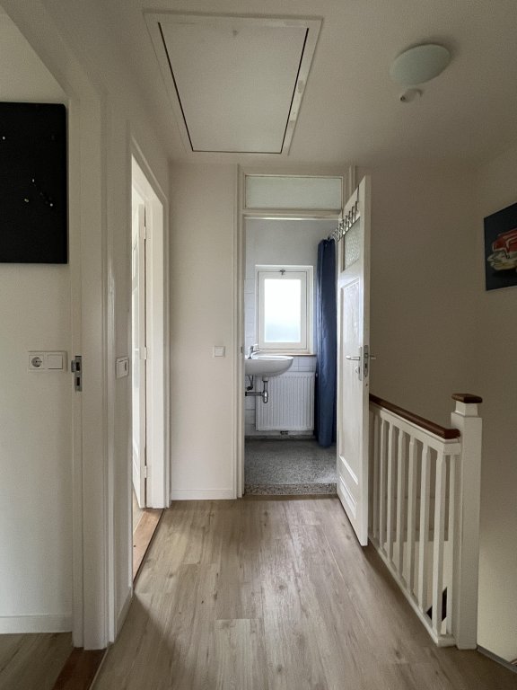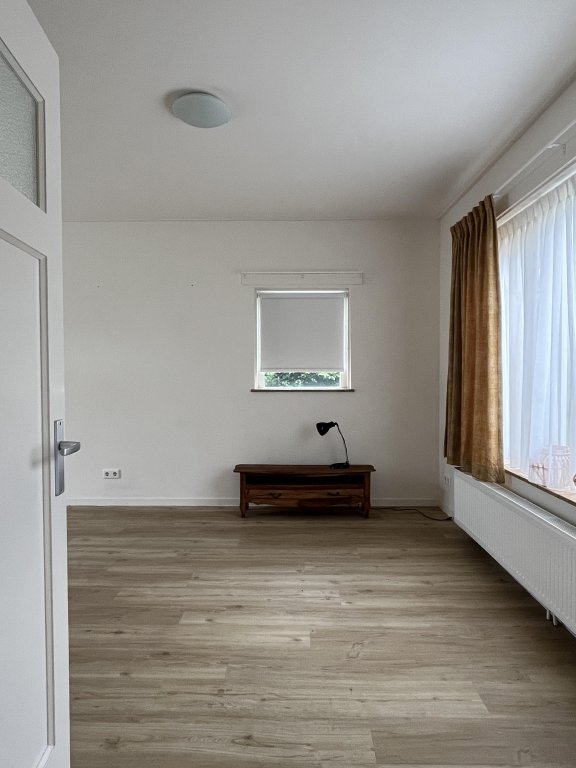 Very nice and spacious house (approximately 95m2) with 2 bedrooms and a study-/ workroom. It has a spacious front garden and an even larger backyard. The house is located on the edge of the city, with public transport, restaurants, supermarkets, schools, and daycare nearby. The bus stop with perfect connections to Amsterdam and Schiphol is at the corner of the street, and the highways to Amsterdam, Schiphol, and The Hague are easily accessible by car.