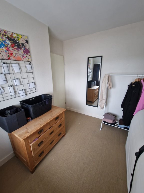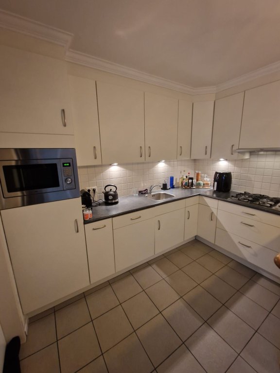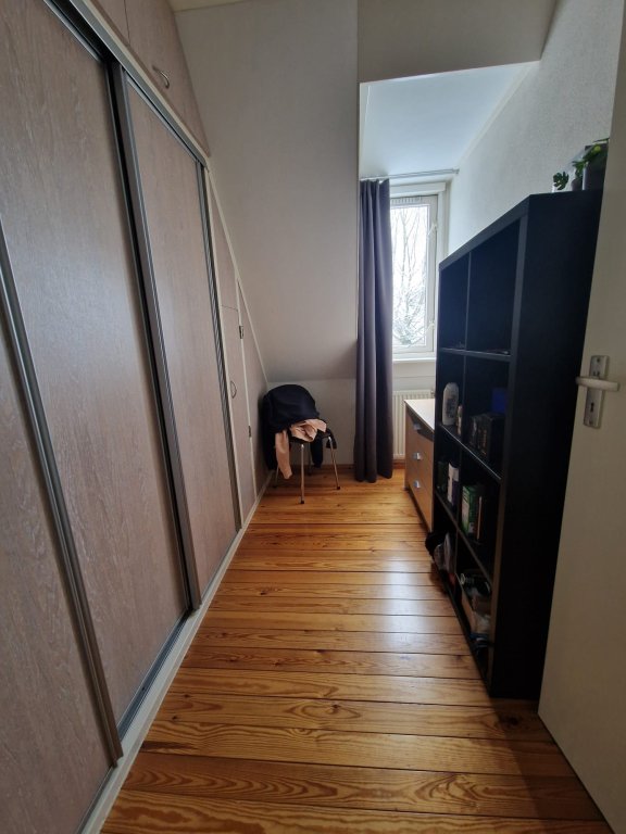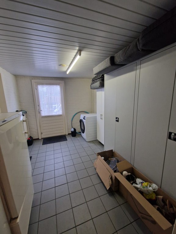 De meubels op de foto’s zijn van de huidige bewoners; de woning wordt leeg opgeleverd, met uitzondering van de stoffering en een aantal vaste kasten.
