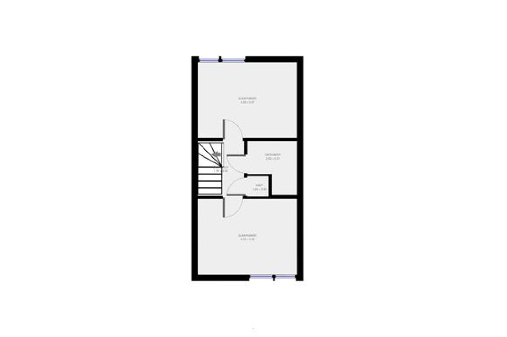 Eerste verdieping: Overloop; 2 slaapkamers ca 12 m2; badkamer met toilet, wastafel en inloopdouche.