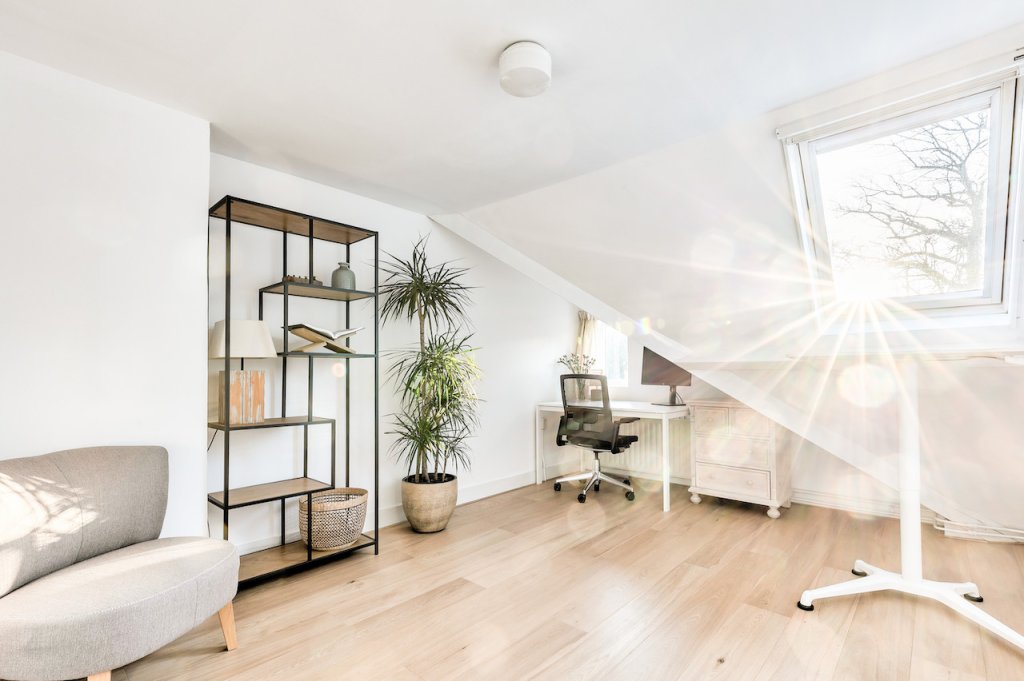 Via the staircase you reach the second floor which also has 2 large bedrooms and a second bathroom with shower, washbasin and toilet. The bedrooms on this floor can also be used as spacious home offices to quietly work at home.