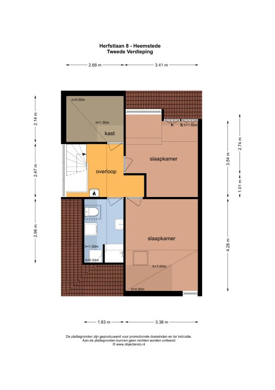 Via de vaste trap bereikt men de tweede verdieping welke tevens is voorzien van 2 grote slaapkamers en een tweede badkamer voorzien van douche, wastafelmeubel en toilet. De slaapkamers op deze verdieping kunnen bovendien worden gebruikt om rustig thuis te werken.