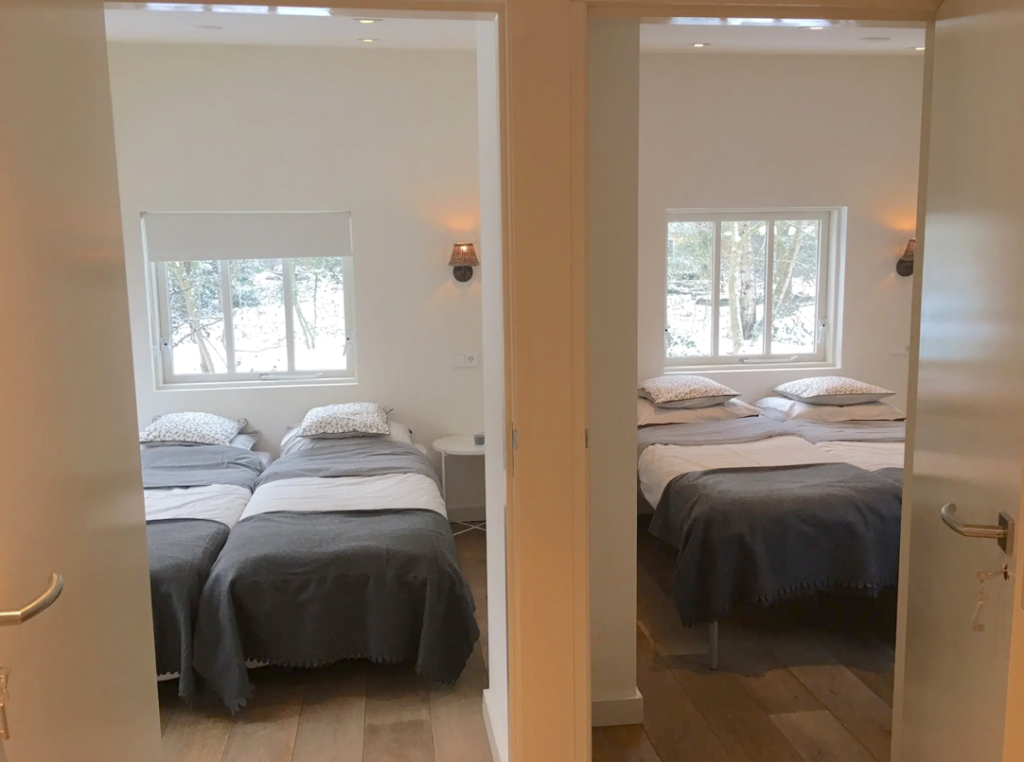 De gehele woning is voorzien van natuurstenen vloeren; de slaapkamers zijn afgewerkt met eiken houten planken wat zorgt voor een warme en natuurlijke uitstraling. Twee van de drie slaapkamers bieden eveneens toegang tot het terras via openslaande deuren.