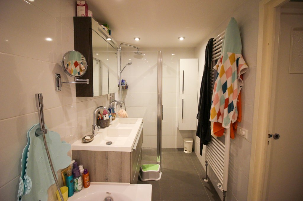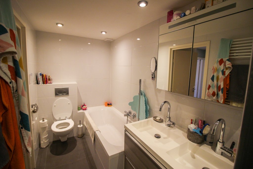 Op deze verdieping bevindt zich ook de ruime badkamer, onder meer voorzien van douchecabine, dubbele wastafel met fraai badkamermeubel, designradiator, zwevend toilet en kastruimte.