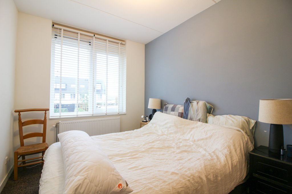 Trapopgang, 1e slaapkamer ingericht met een twee-persoonsbed en garderobe kast, 2e slaapkamer ingericht met een 1 persoonsbed en een kledingkast. Moderne badkamer met wastafelmeubel, inloopdouche en 2e toilet.