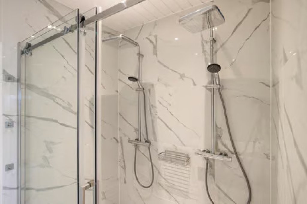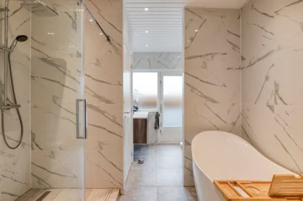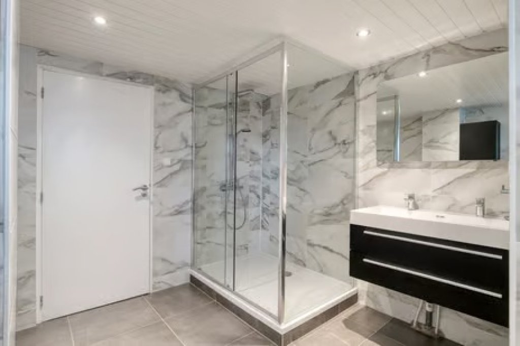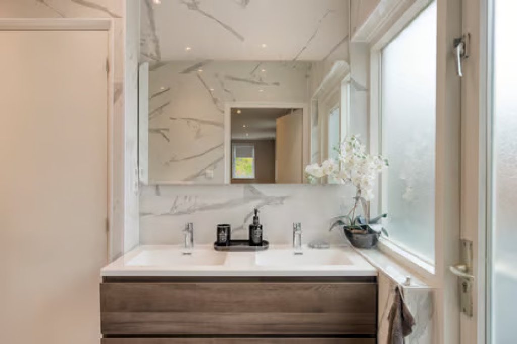 Eerste verdieping; overloop, 4 ruime slaapkamers en drie luxe badkamers. Ook heb je vanaf deze verdieping toegang tot het dakterras.