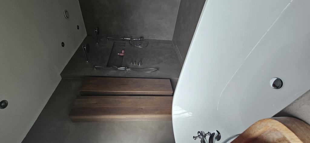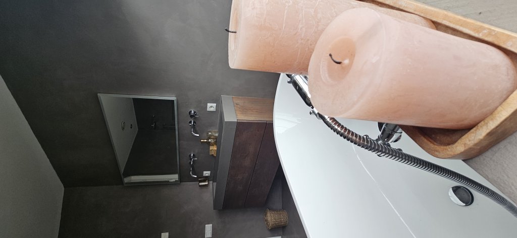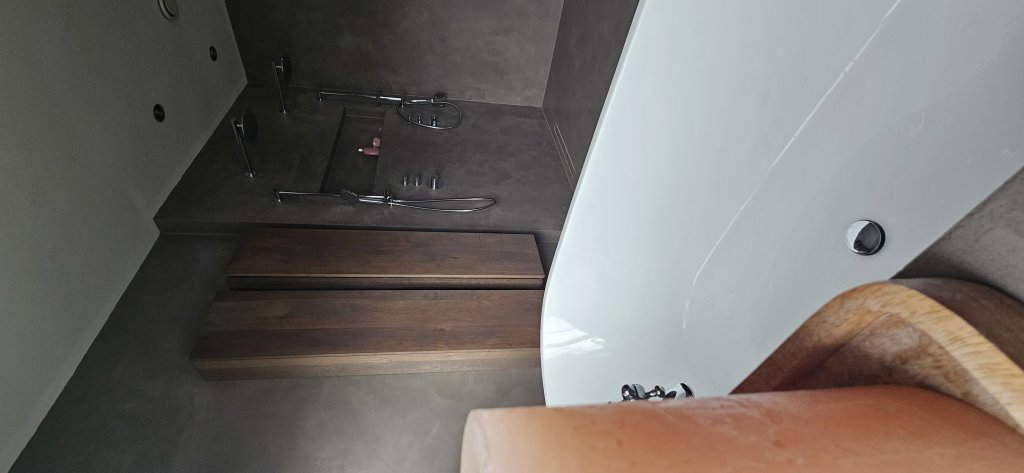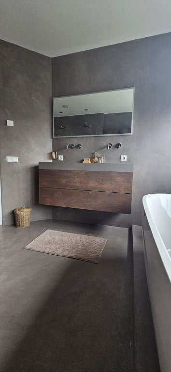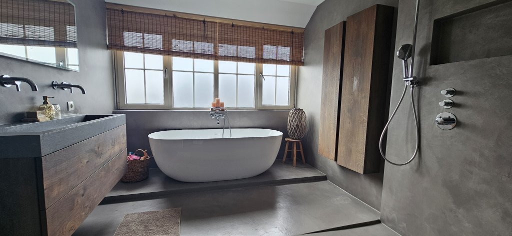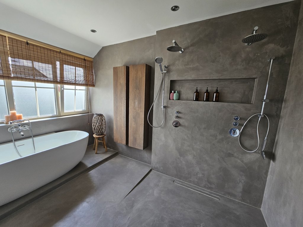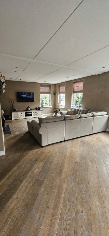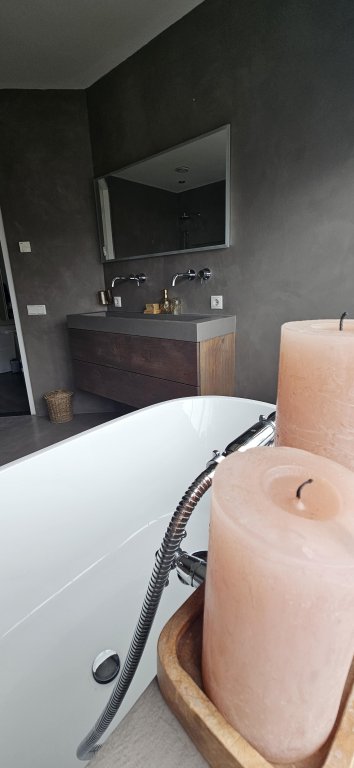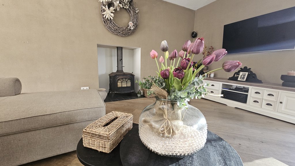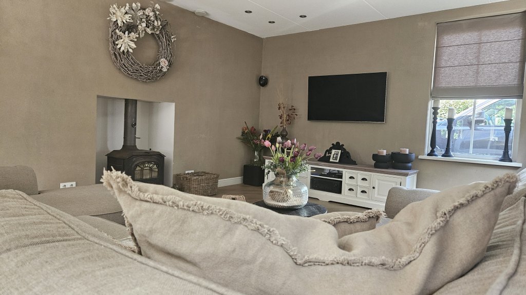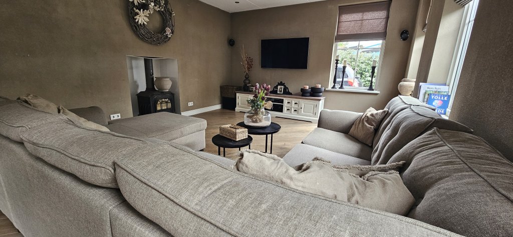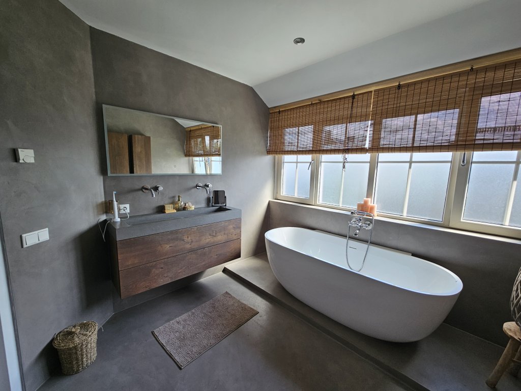 -Ruime woonkamer, moderne keuken, bijkeuken en badkamer met ligbad en douche