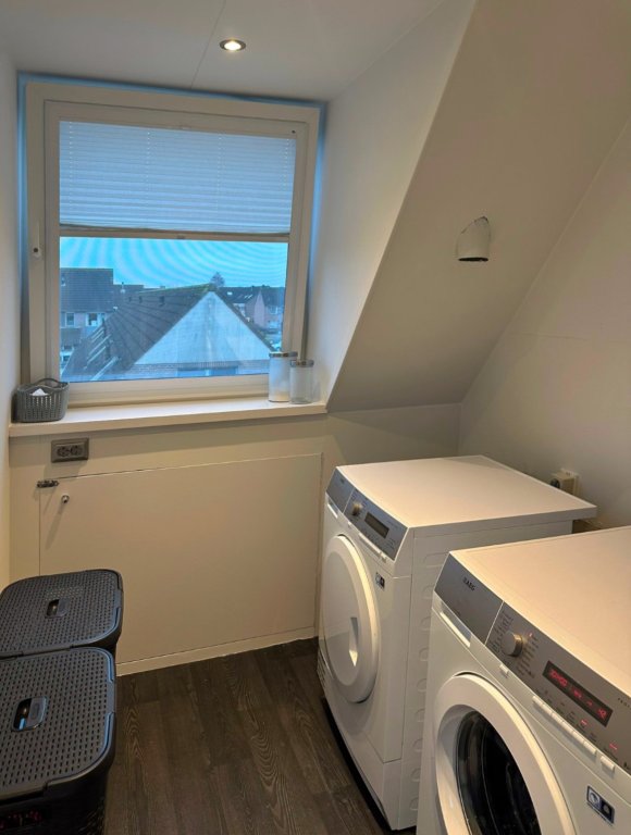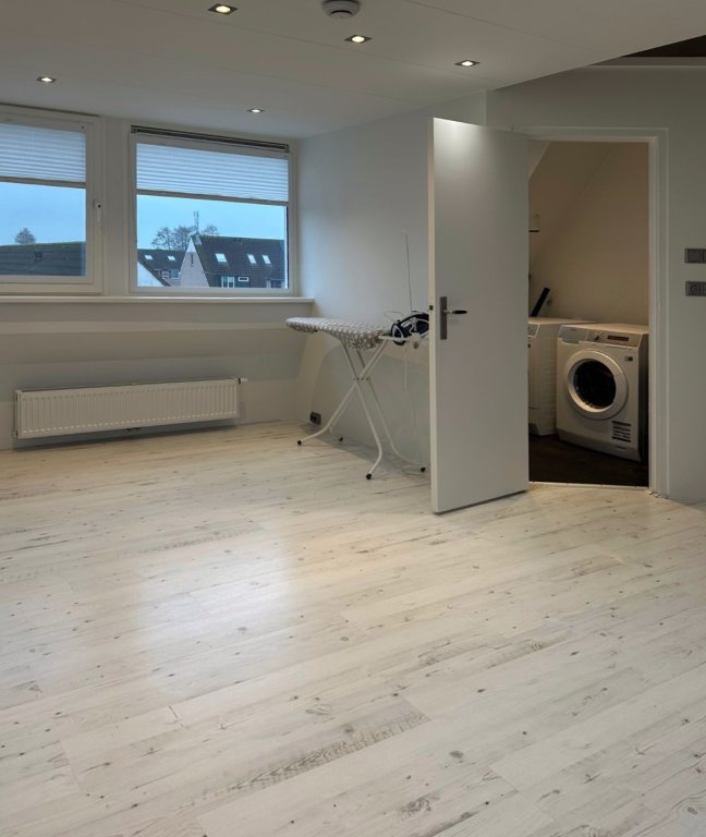Op de zolderverdieping heb je een thuiskantoor én een praktische wasruimte met wasmachine en droger;