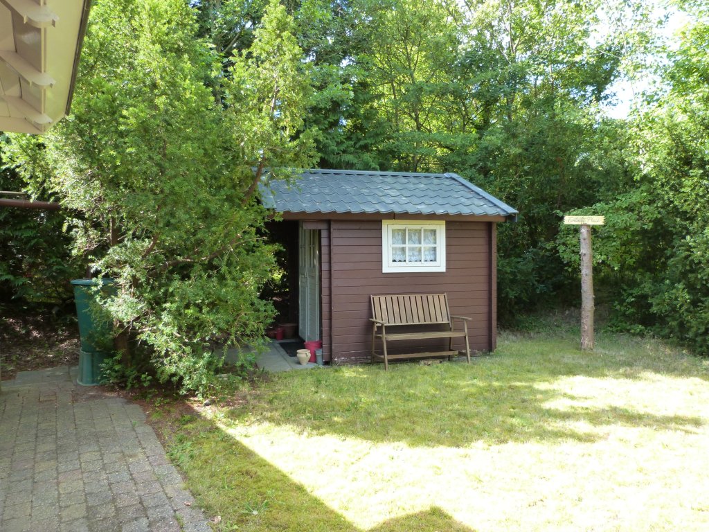 Tuin: oprit; tuin rondom; terras de achterzijde op het zuidwesten, deels overdekt; recent gebouwd extra houten berging, recent gebouwd.