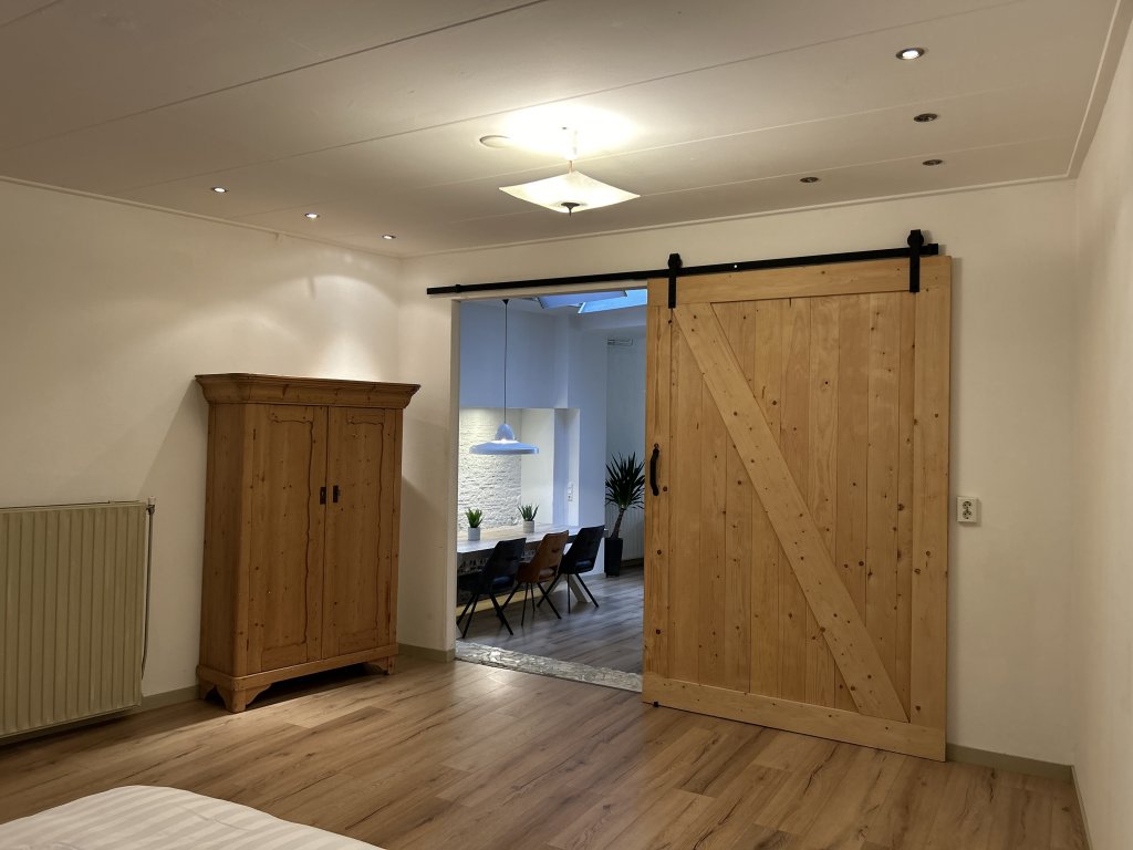 In de slaapkamer komt nog een grote kledingkast. In de woonkamer wordt een 55 inch televisie geplaats aan de kale wand tegenover de bank.