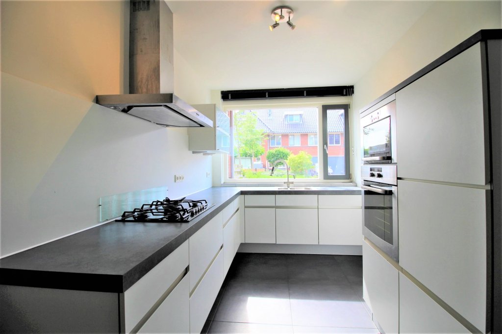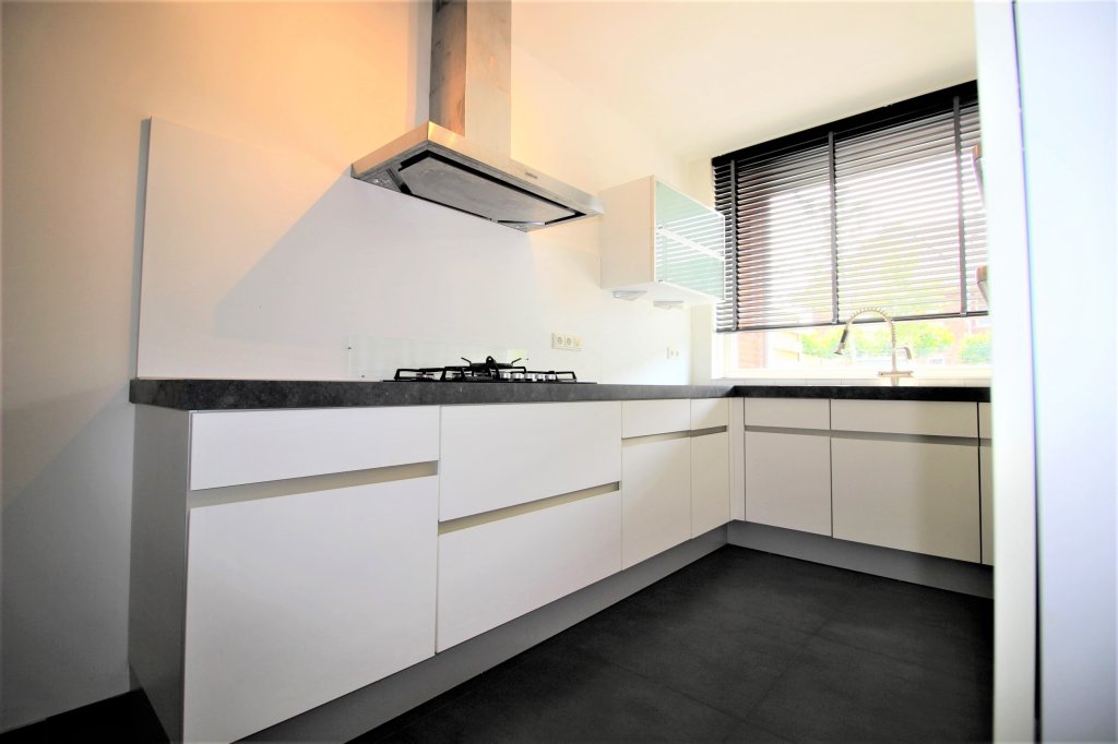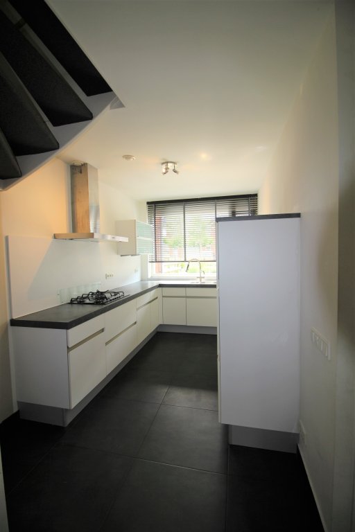 Verder is de keuken voorzien van veel kastruimte, magnatron en oven, vaatwasser en koelkast. Vanuit de keuken/ hal kunt u naar de woonkamer en is er een trap naar de eerste verdieping.