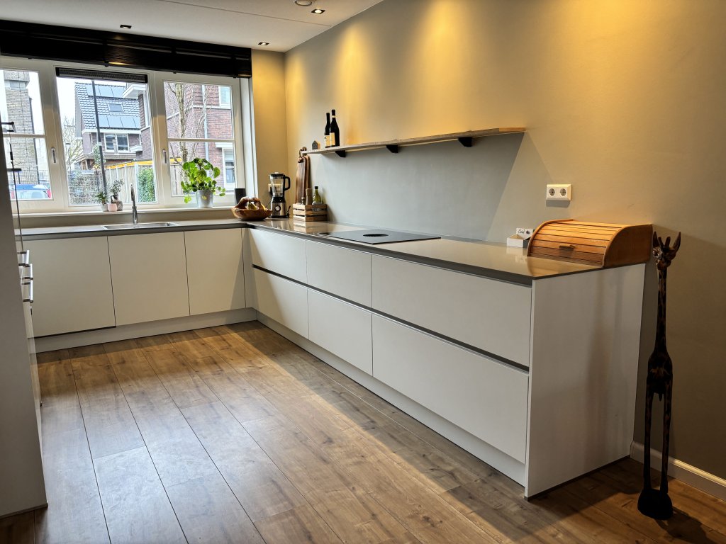 Entree in hal met meterkast, toiletruimte en de trap naar de 1e verdieping. Via een mooie glasdeur kom je binnen in de royale open keuken waar de echte kookliefhebber zijn hart ophalen. De keuken is voorzien van een inductiekookplaat met ingebouwde afzuiger, een vaatwasser, een combi-oven, een koelkast en vriezer. Aansluitend de ruime woonkamer met toegang tot de zonnige tuin.