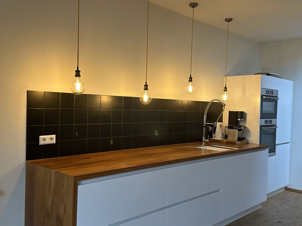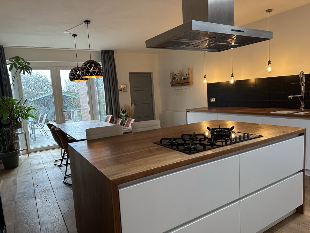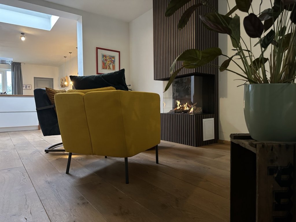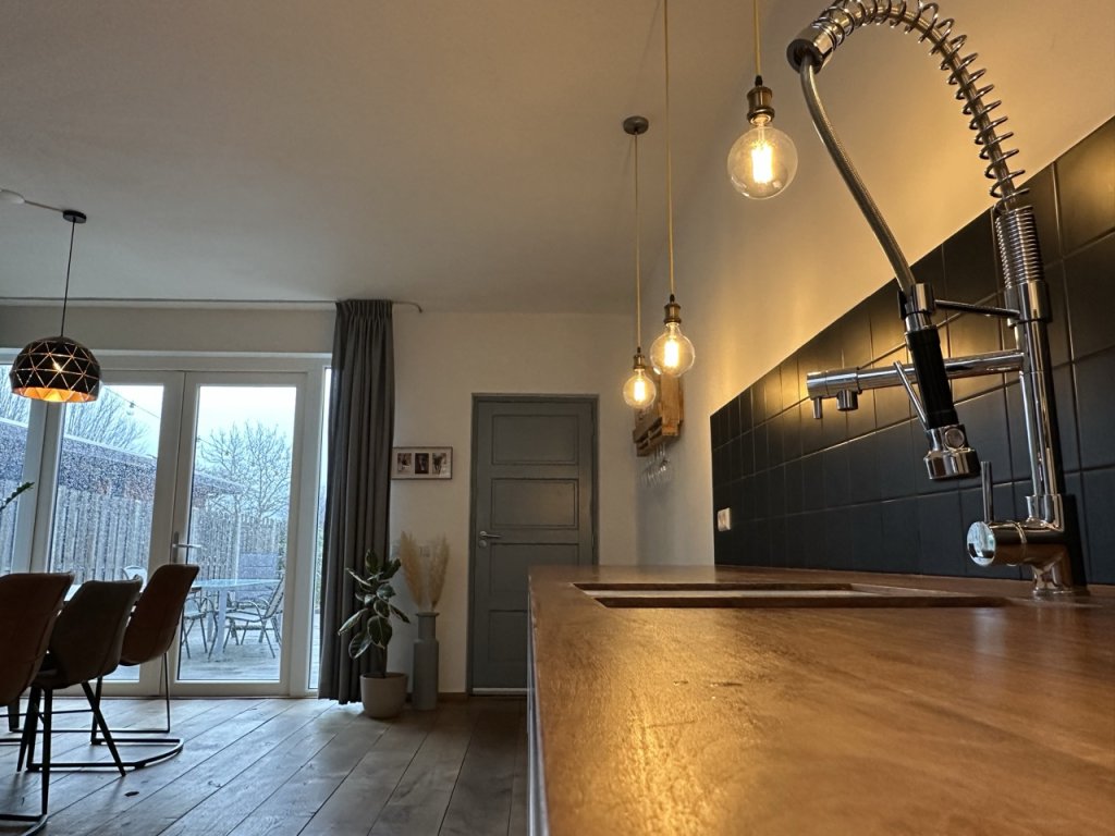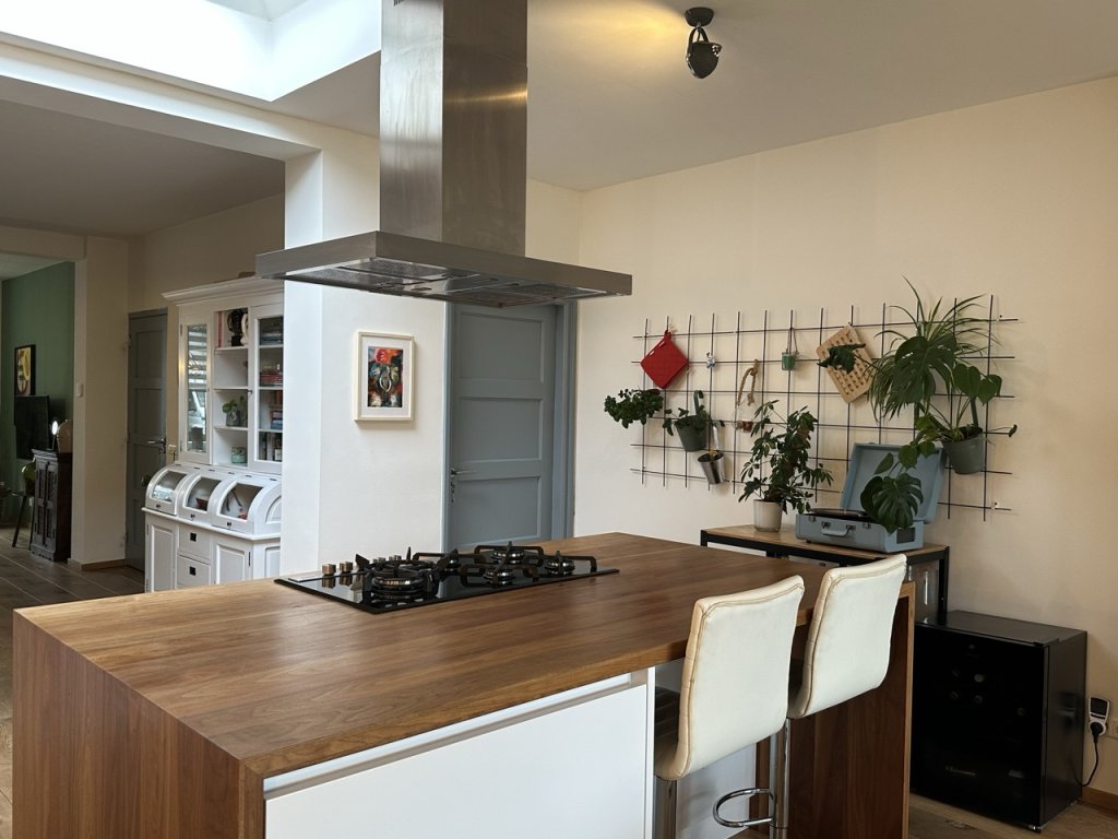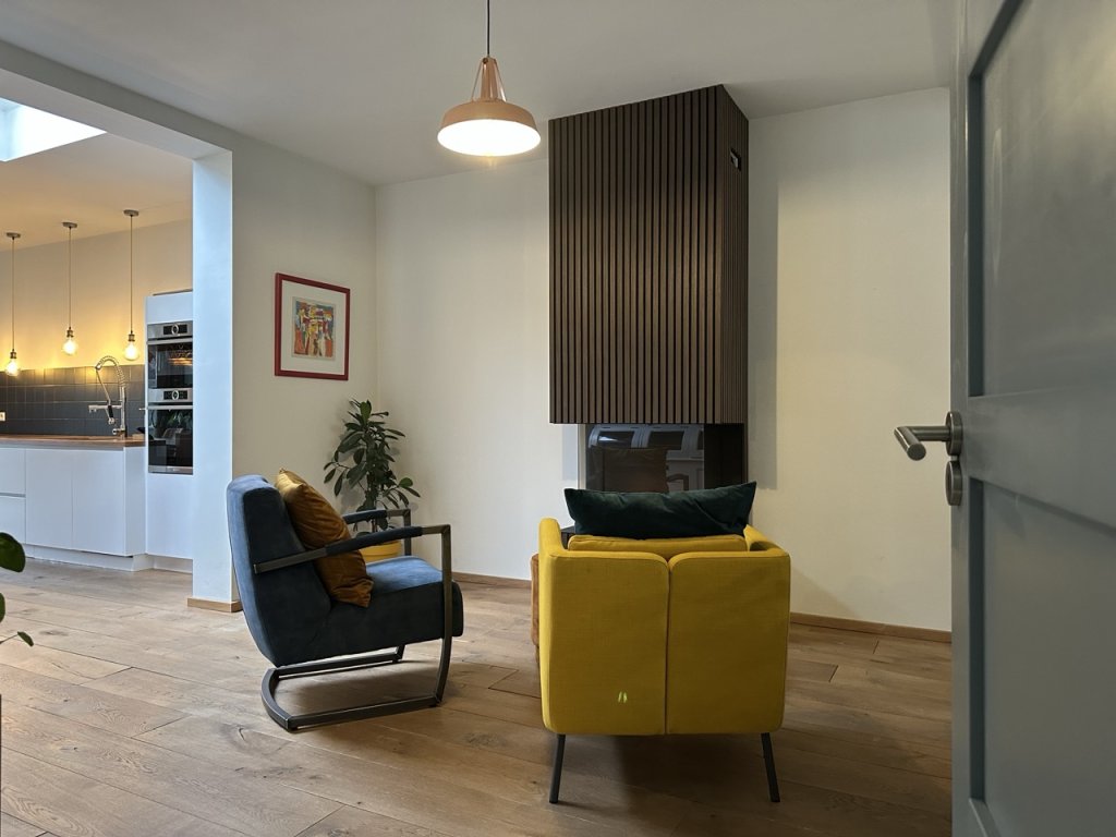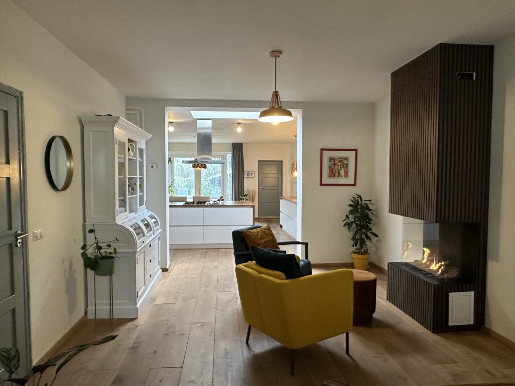 Bij binnenkomst in deze woning kan de prachtige, originele terrazzo vloer u niet ontgaan. Aan dit detail kunt u zien dat de woning eigenlijk uit 1930 komt. Wanneer u de woonkamer betreedt, komt de warmte van de haard en de mooie houten vloer u tegemoet. Een aangename woonkamer met gezellige meubels geeft ruimte voor genot en comfort. Een ruime leefkeuken met kookeiland verbindt de woonkamer met de eetkamer, waar veel zonlicht binnenvalt door de openslaande deuren naar de tuin. Een lang, houten werkblad en een vijfpits Boretti gasfornuis maken koken een plezierige bezigheid. In de hal bevindt zich een trappenhuis waarmee u de verdiepingen bereikt.