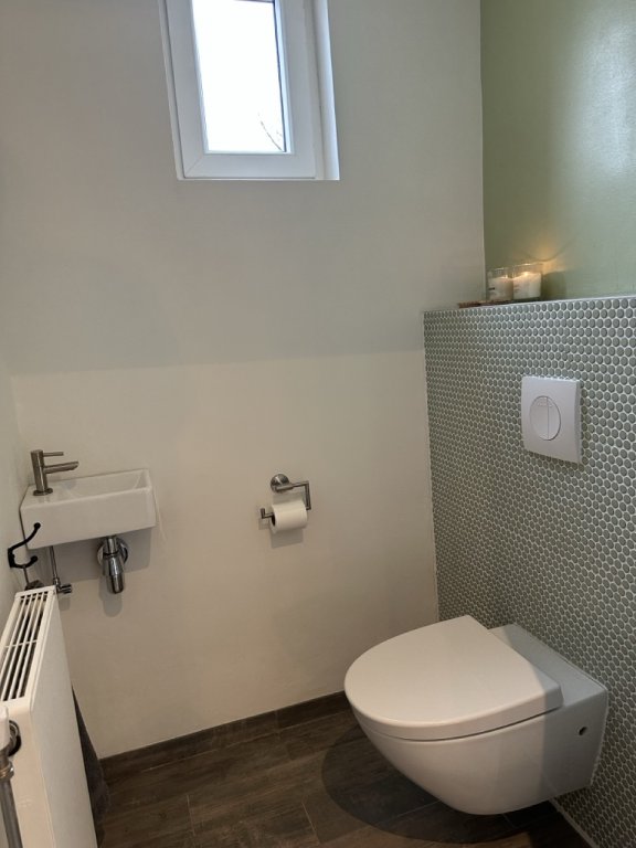 Vanuit de leefkeuken kunt u een tussenruimte betreden die een achterdeur naar de tuin bevat. Ook het toilet bevindt zich hier achterin de woning. Verder is de ruimte geschikt voor opslag van huishoudelijke apparaten. Naast de voordeur zit nog een afgesloten tussenruimte die als doorgang naar de tuin fungeert. Deze ruimte wordt gedeeld met de buren en is vrij van materiaal. Met behulp van deze doorgang, kunt u fietsen e.d. handig in de achtertuin plaatsen.