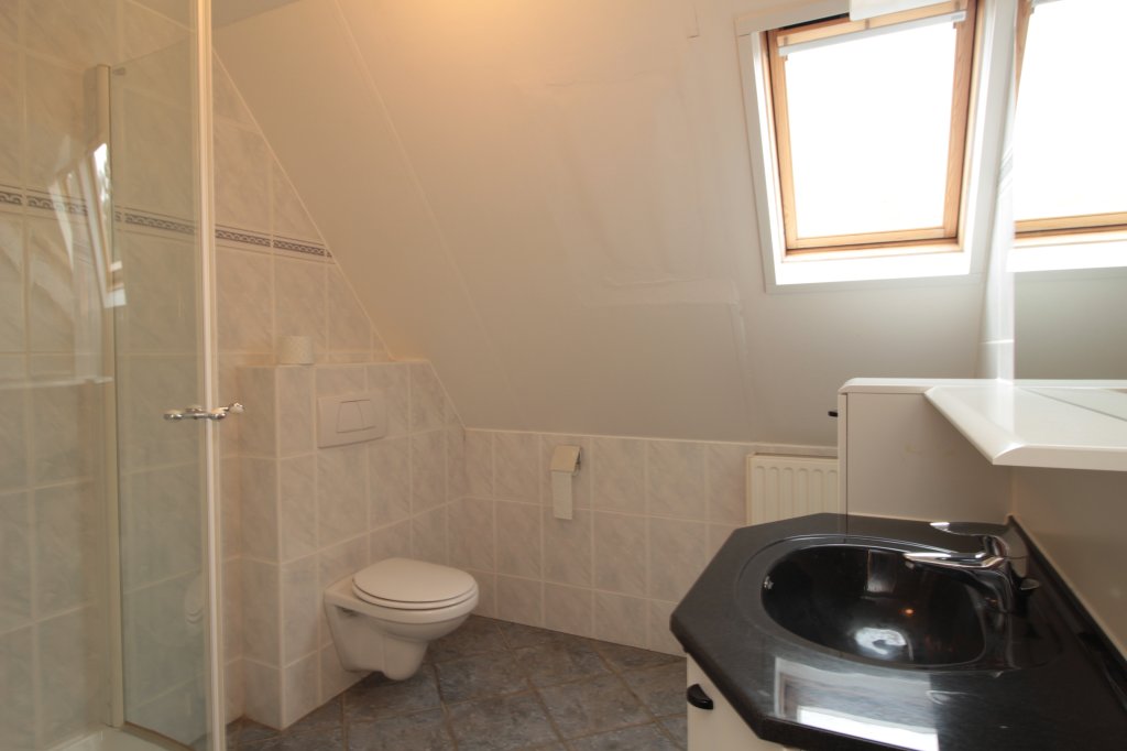 Eerste verdieping: overloop, drie ruime slaapkamers, bergruimte, badkamer met douche, toilet en wastafel.