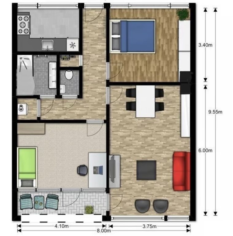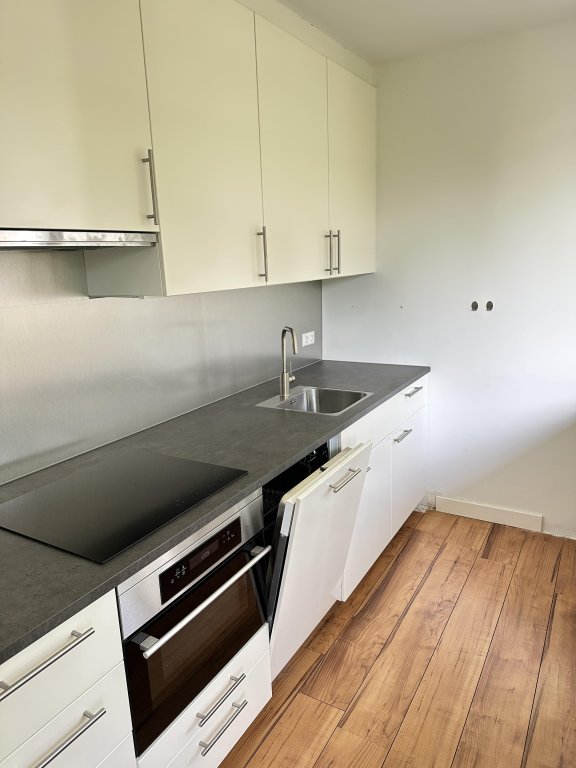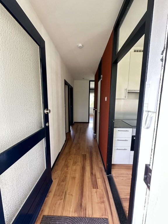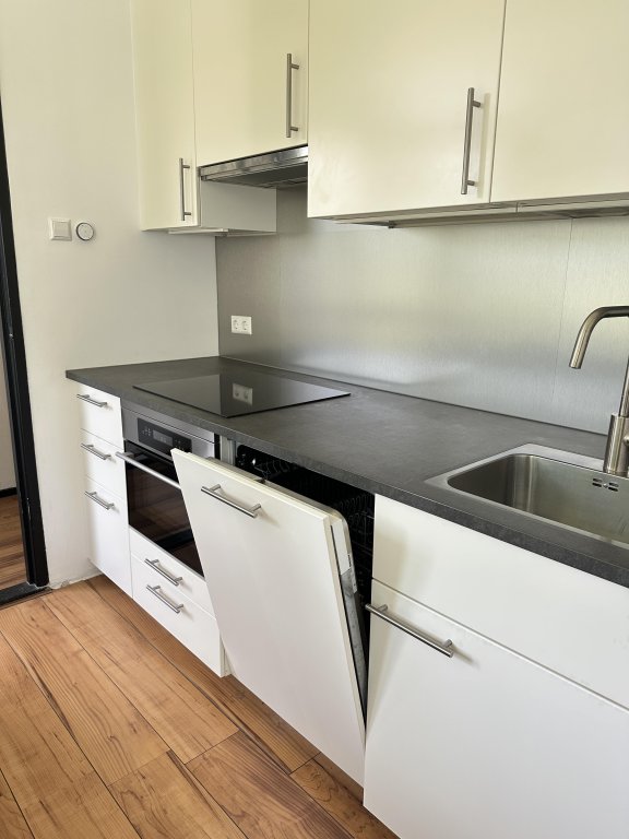 Vanuit de hal heeft u toegang tot de semi-open keuken (afm. ca. 2.85 x 1.94m) welke is gelegen aan de voor-/ galerijzijde. De keuken is tevens v.v. een moderne laminaatvloer. De recent vernieuwe keuken beschikt over diverse inbouwapparatuur te weten een 4-pitsinductiekookplaat met afzuigkap, koelkast, vaatwasser en oven. Het grote keukenraam zorgt voor een aangename lichtinval. Slaapkamer I is gelegen aan de voor-/ galerijzijde van het appartement. Deze slaapkamer is voorzien van laminaatvloer en een vaste kast. Slaapkamer II is gelegen aan de achterzijde van het appartement en eveneens voorzien van een laminaatvloer. Geheel betegelde badkamer met douche en dubbele wastafel. Grote bergkast met opstelplaats van de elektrische boiler en de wasmachine.