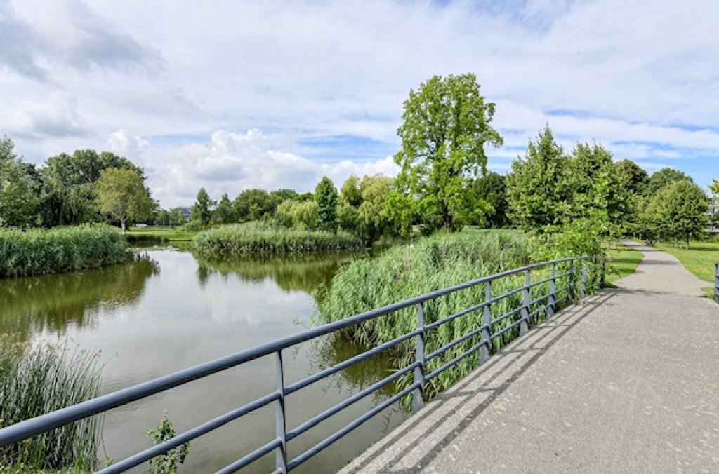 De entree/ hal is voorzien van een laminaatvloer en geeft toegang tot alle vertrekken. De heerlijk lichte woonkamer is gelegen aan de achterzijde van het appartement. Vanuit de woonkamer heeft u toegang tot het balkon (afm. ca. 4.00 x 1.25m) welke op het zonnige westen is gelegen en waar u heerlijk kunt genieten van de zon en de prachtige omgeving met diverse vijverpartijen.