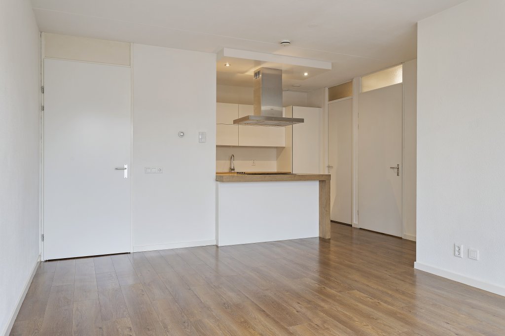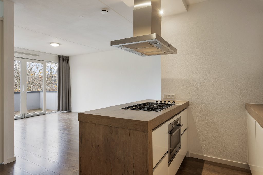 Op de bovenste (derde verdieping) ligt dit appartement met in de hal de meterkast en de toiletruimte. Aansluitend de woonkamer met open keuken. De keuken is modern, neutraal en van alle gemakken voorzien, waaronder een koelkast, 5-pits gasfornuis, combioven en vaatwasser. Tevens is er toegang tot het balkon, deze ligt op het oosten en is ruim genoeg om van het zonnetje te genieten.