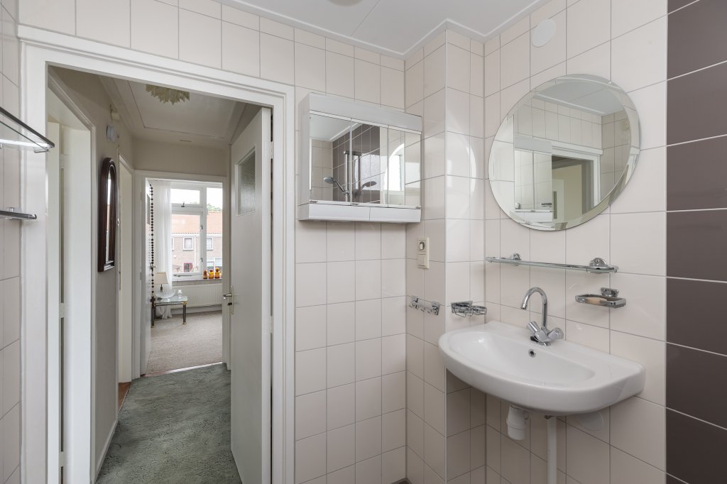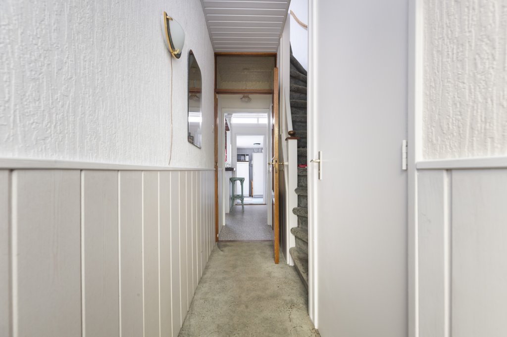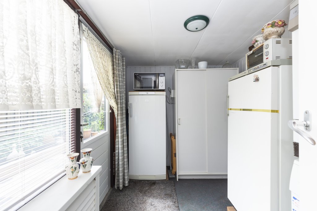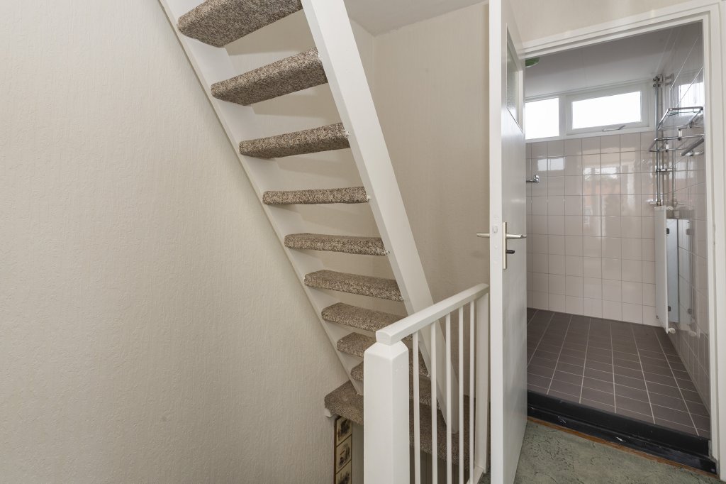 De woning heeft een ruime voortuin, waar u ook heerlijk kunt zitten. Entree in de hal met het toilet en een bergkast onder de trap. Vanuit de hal komt u in de keuken en vandaaruit in de woon-/eetkamer (totaal bijna 32 m2). Als u via de hal naar de achterzijde van de woning loopt, komt u in de keuken. De keuken is voorzien van een gasfornuis met oven/magnetron en veel kastruimte. Via de keuken komt u in de bijkeuken. In de bijkeuken bevinden zich de koelkast, vriezer, wasmachine en droger