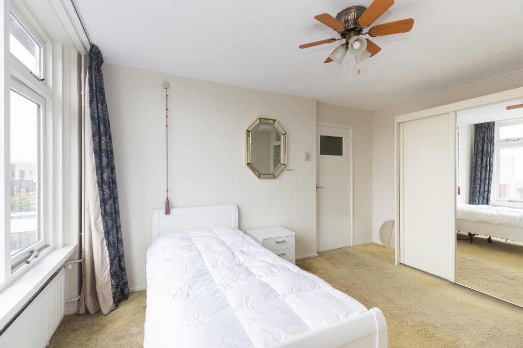 In 1 slaapkamer staat een eenpersoonsbed met kledingkast. De 2e slaapkamer heeft een grote kledingkast. De 3e kamer heeft een eethoek en een kledingkast. De ruime badkamer heeft een douche en een wastafel.