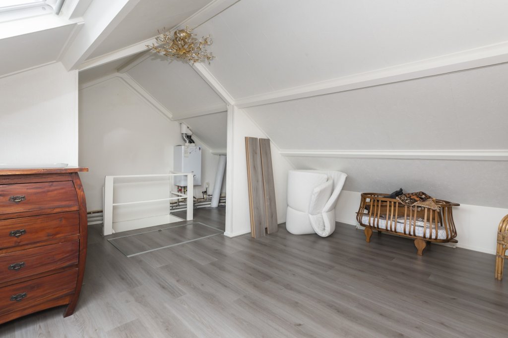 Vanaf de overloop gaat u met de trap naar de 2e verdieping. De cv-ketel bevindt zich ook op de zolder. Op de 2e verdieping is de grote open zolder (12 m2) uiteraard ook te gebruiken als slaapkamer.