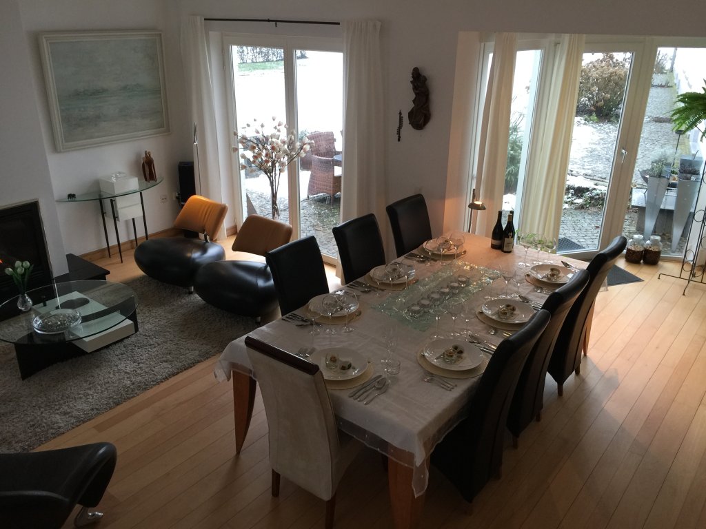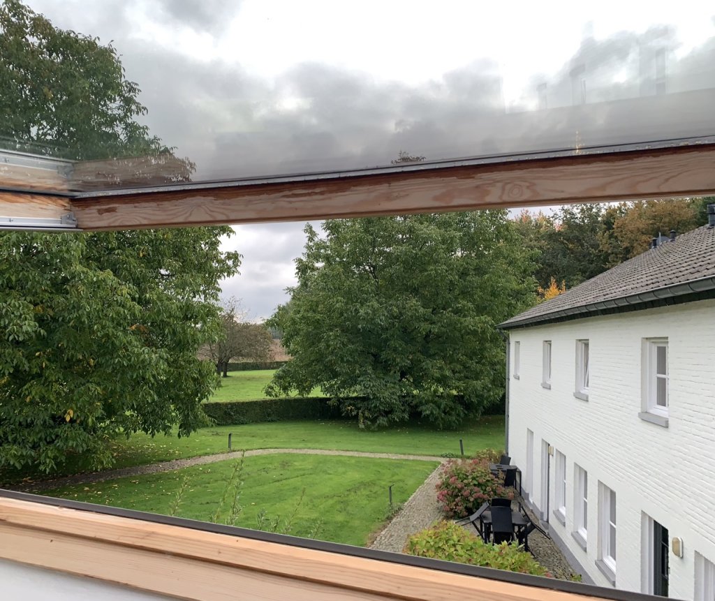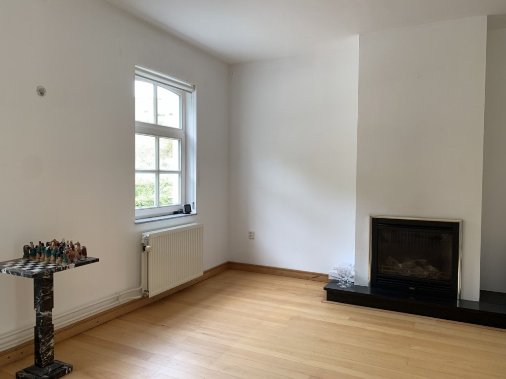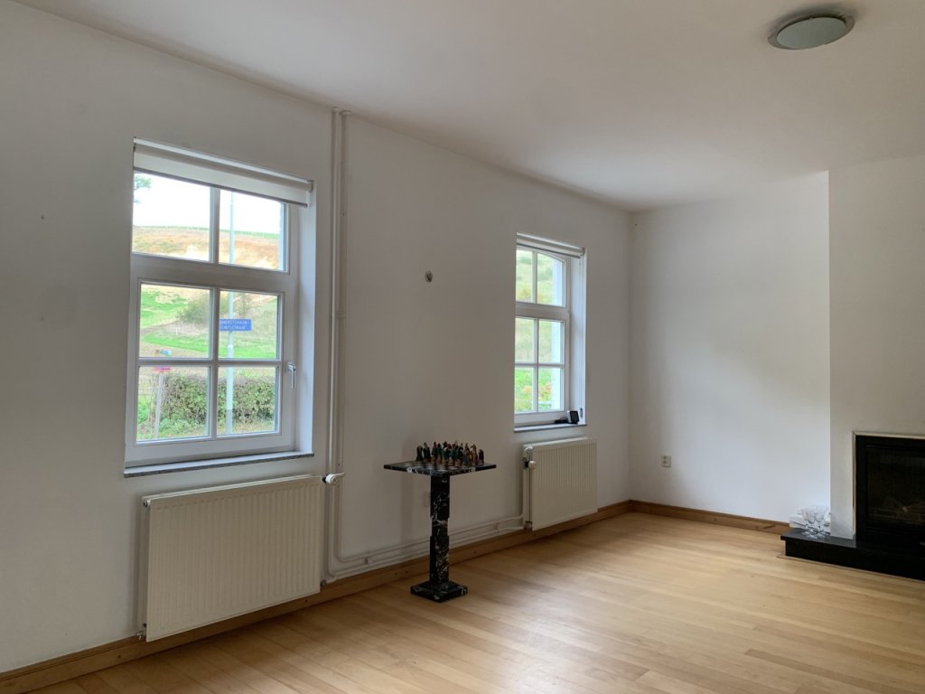 Een gedeelde hal leidt u naar uw privé-entree met aparte toiletruimte en meterkast. Door een chique glazen deur stapt u de ruime woonkamer binnen, die is voorzien van een gezellige, werkende open haard. Om de hoek bevindt zich de open keuken met toegang tot de achtertuin en een doorgang naar zowel een bijkeuken als een ruime kelder. Vanuit de keuken kijkt u door de glazen achterwand uit over het uitgestrekte groen van het Limburgse Heuvelland.