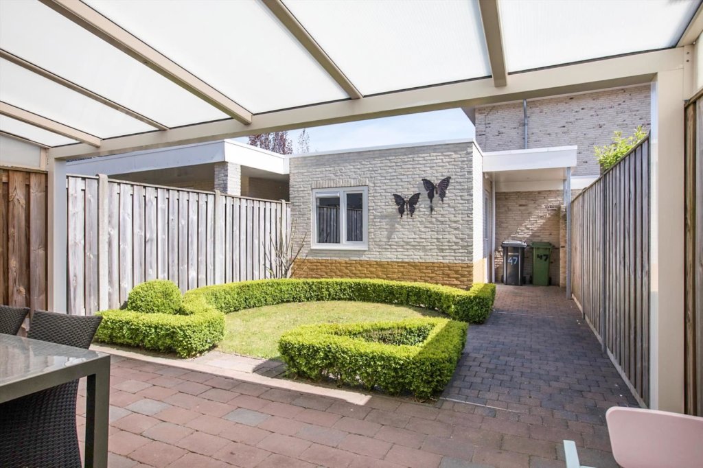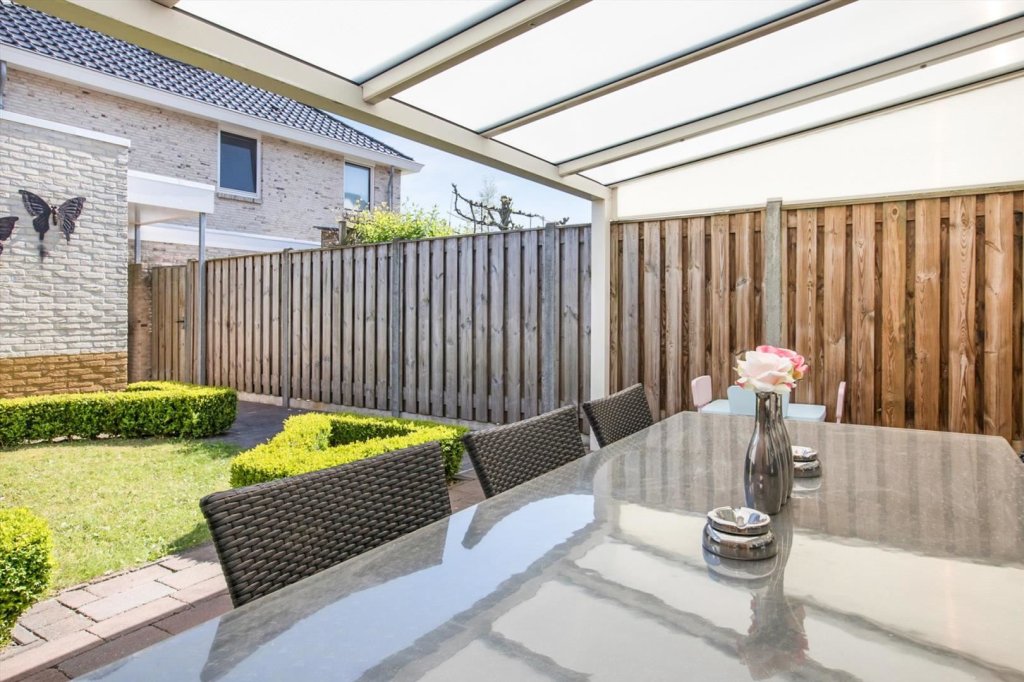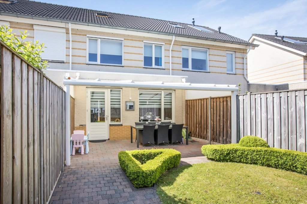 De zonnige achtertuin is gelegen op het zuid-oosten en te bereiken via achterom. Er is een ruime vrijstaande berging aanwezig welke voorzien is van elektra.