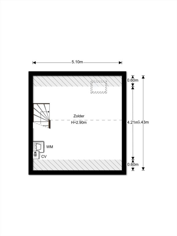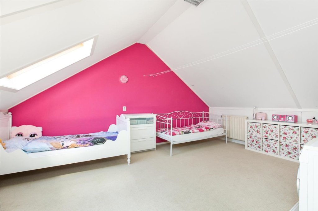 bereikbaar via vaste trap, overloop met CV-opstelling, bergruimte achter schuine kant, mogelijkheid tot ruime vierde slaapkamer.