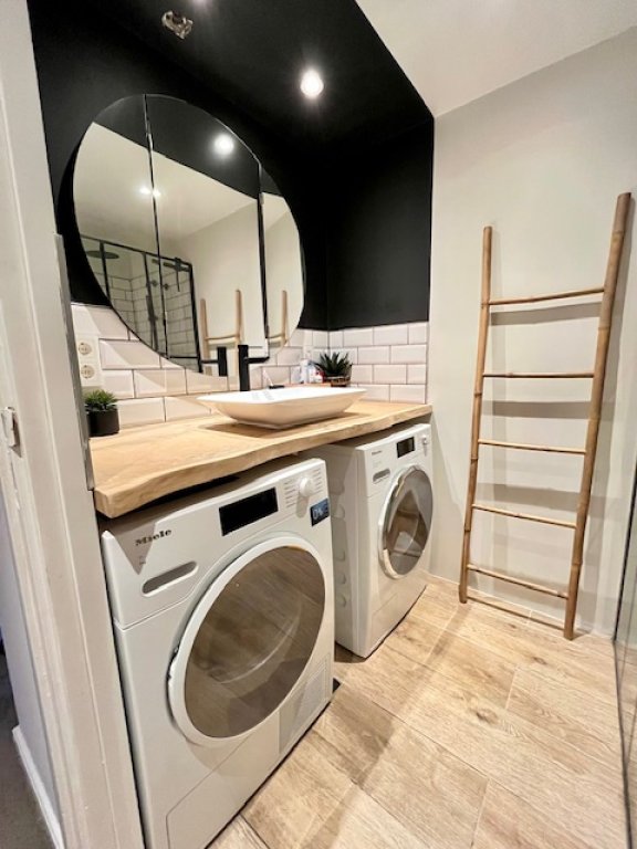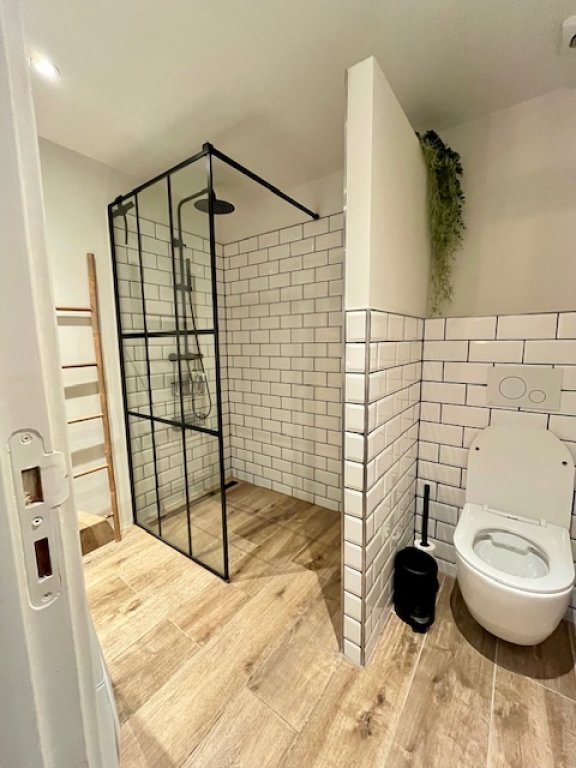 - Badkamer: uitgerust met douche, toilet, wasmachine en droger.
