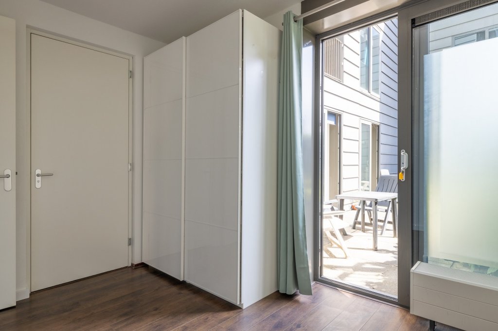 De woonkamer heeft uitzicht op de Boomstraat en beschikt over een open keuken. De slaapkamer is gelegen aan de rustige tuinzijde. Er is een gedeelde patiotuin. De badkamer is voorzien van een douche en wastafel en er is een separaat toilet. In de inpandige berging is ruimte voor het plaatsen van een wasmachine.