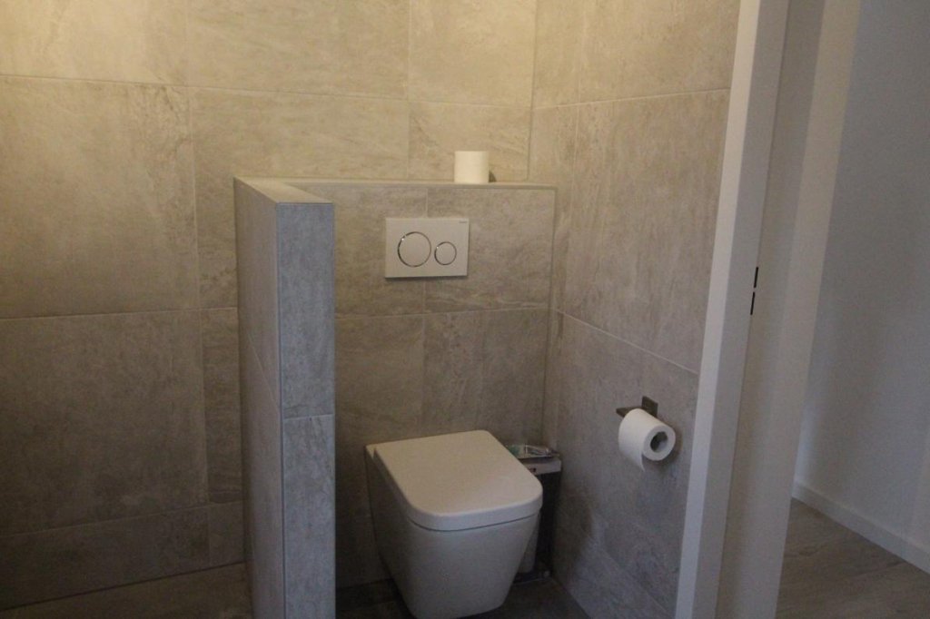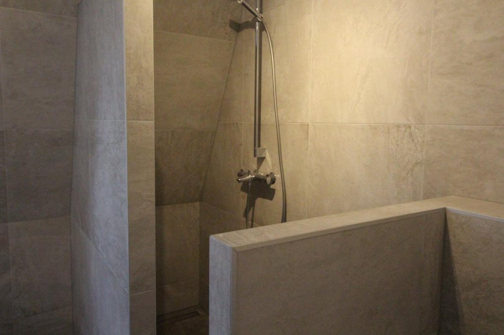De slaapkamer is aan de straatzijde gelegen en grenst direct aan de modern ingerichte badkamer. De badkamer is volledig betegeld en voorzien van een douche, wastafel en toilet.