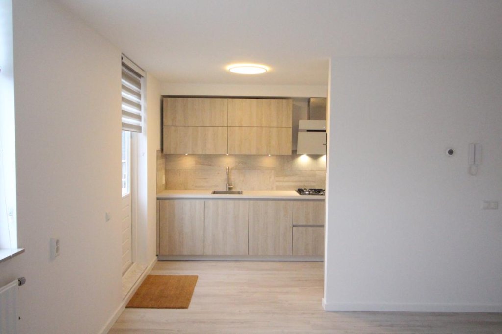 De gezellige woonkamer beschikt over een moderne open keuken, voorzien van een gaskookplaat, afzuigkap, combi-oven, koelkast en vaatwasser. Vanuit de woonkamer is er toegang tot het balkon, gelegen op het zuidoosten. Dankzij de grote ramen geniet het gehele appartement van veel natuurlijk licht.