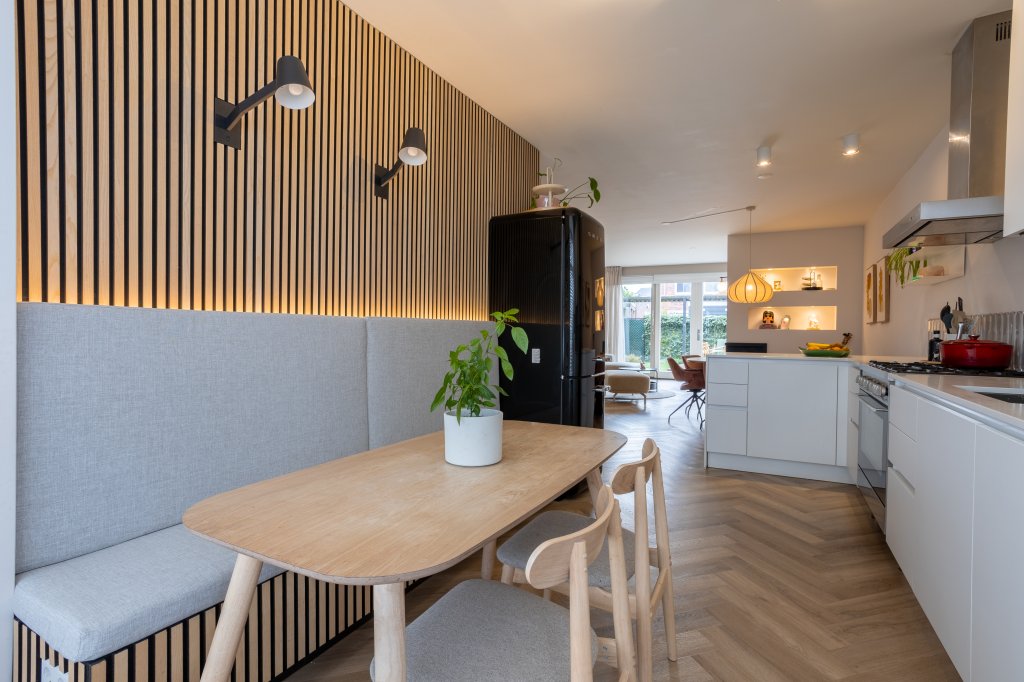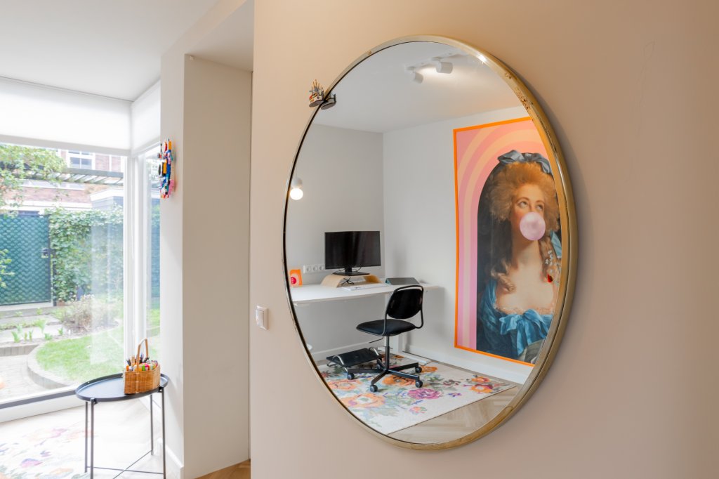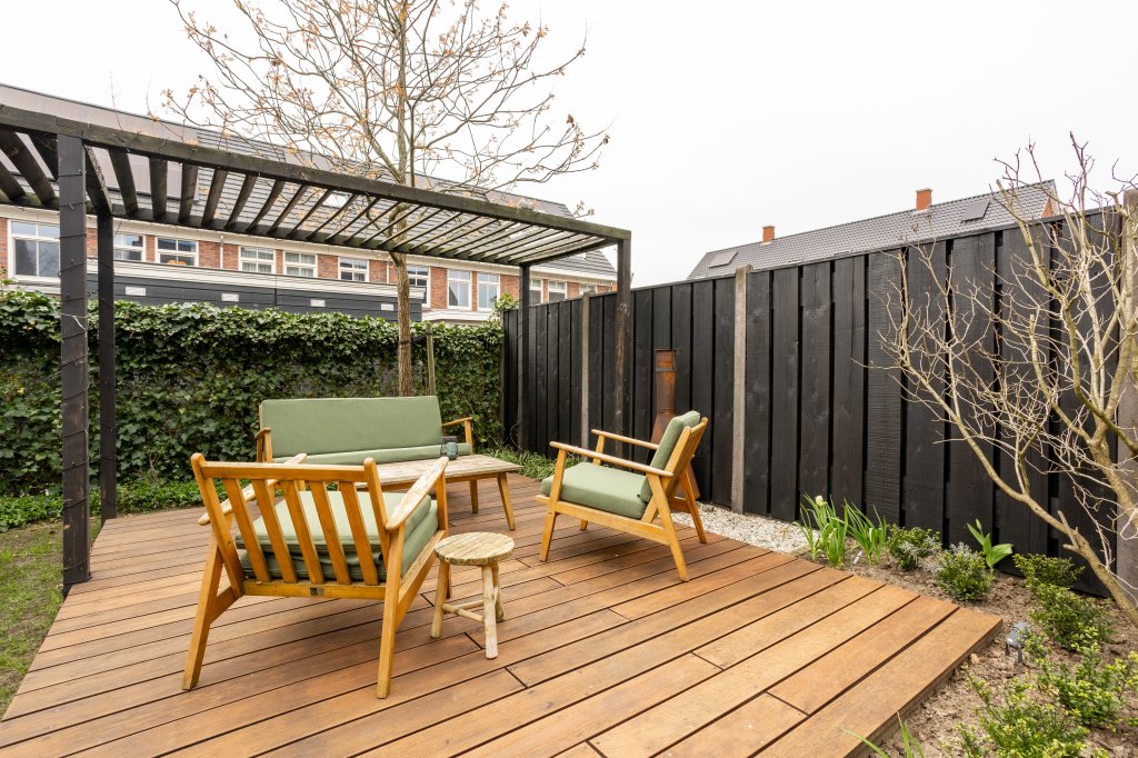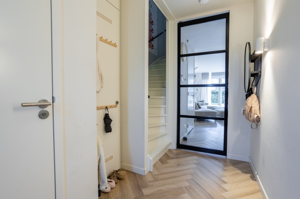 Op de begane grond vind je een sfeervolle woonkamer met veel lichtinval, een gezellige eethoek en een moderne hoekkeuken van alle gemakken voorzien. Daarnaast is er een fijn kantoor en een garage voor fietsen en opslag. Vanuit de woonkamer loop je de fijne tuin in met een overkapping, perfect om tot rust te komen.