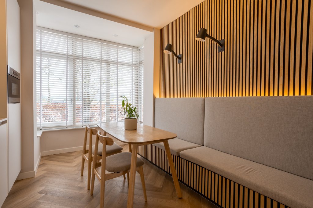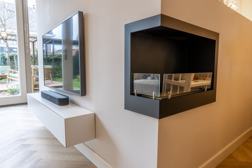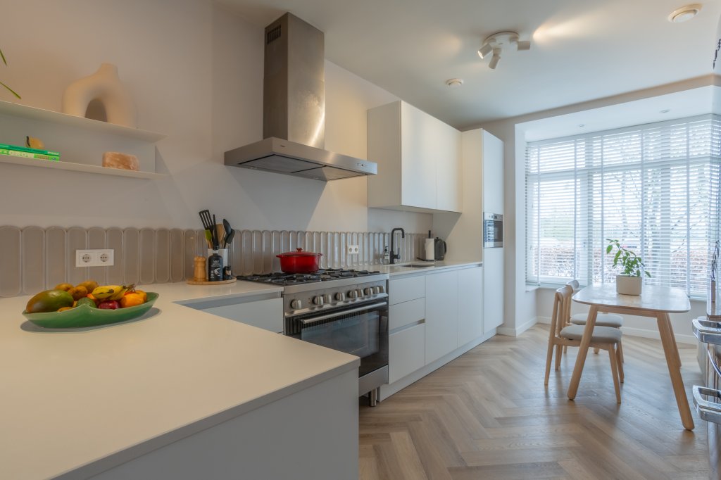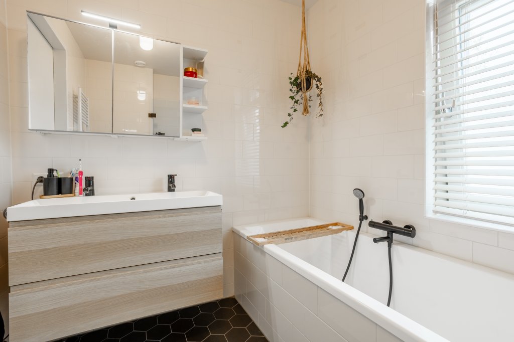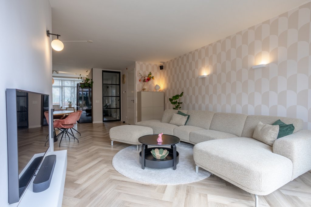 Op de begane grond vind je een sfeervolle woonkamer met veel lichtinval, een gezellige eethoek en een moderne hoekkeuken van alle gemakken voorzien. Daarnaast is er een fijn kantoor en een garage voor fietsen en opslag. Vanuit de woonkamer loop je de fijne tuin in met een overkapping, perfect om tot rust te komen.