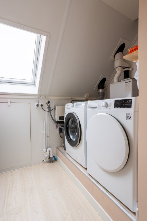 Op de zolder vind je de wasmachine en droger, nog twee kinderkamers en een extra kantoorplekje, ideaal voor gezinnen die thuis werken of studeren.