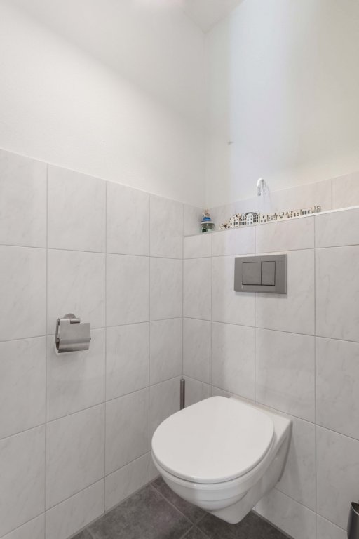 Via de ruime entree met toilet en grote bergkast heb je toegang tot zowel de eetkamer als de woonkamer. Vanuit de hal is er tevens een trapopgang naar de verdiepingen en de ruime kelder.